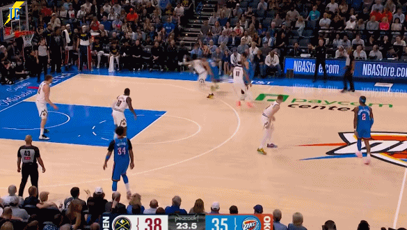 暂停回来,米切尔闪转腾挪篮下打进,随后杰林投进转换的底角三分帮助雷霆反超,但哈达