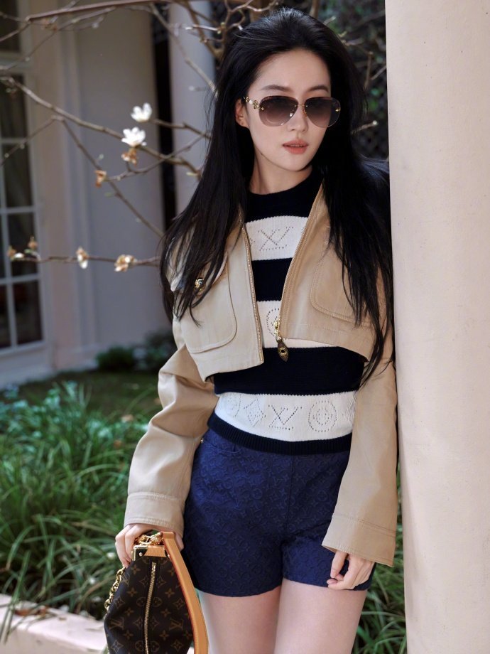 刘亦菲条纹内搭超短裤造型 刘亦菲lv大秀造型出图 刘亦菲lv大秀造型出图,刘亦