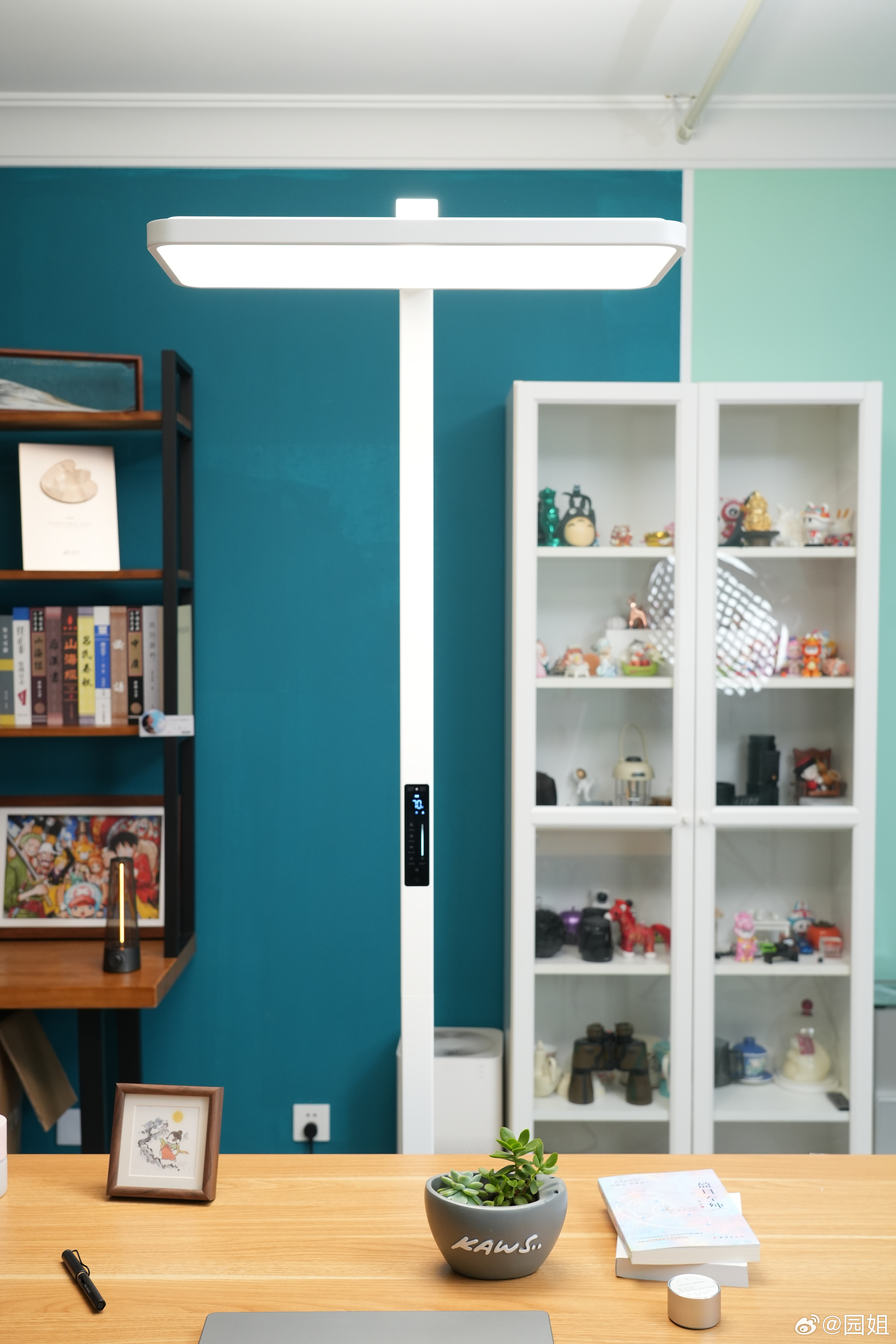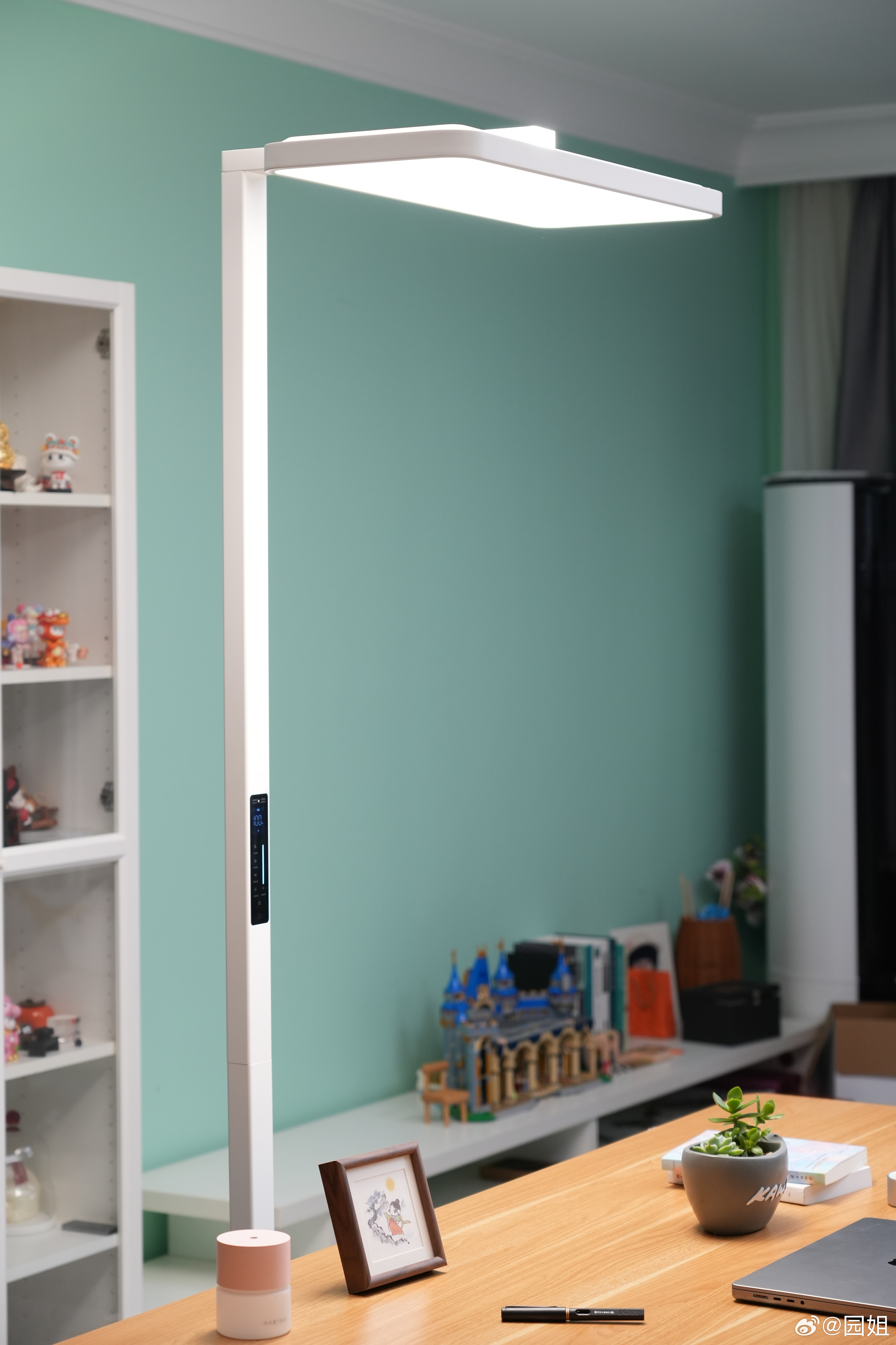 这东西叫大路灯还真是很贴切,给小园园安排了一个米家立式学习灯 2,有2米多高,有点夸张了,话说回来经常陪孩子学习的都知道,孩子写作业总说眼睛酸,大概率就是跟灯光有关系。灯照得不均匀,桌面一块亮一块暗,还有重影手影。平时自己在这种环境下办公都觉得累,更别说孩子了。米家这款灯照整个书桌都亮堂堂的,一盏灯就能点亮15平米的空间确实很强。而且光特别柔和,灯罩上有防眩板凑近看也不刺眼。最省心的是有人来灯亮、人走灯灭,不用再担心孩子忘关灯。AI 还能跟着白天黑夜调亮度,不用手动折腾。灯头能90°旋转,不管孩子在书桌哪块写作业都能照到,还有配套的蓝牙遥控器,日常使用很方便。