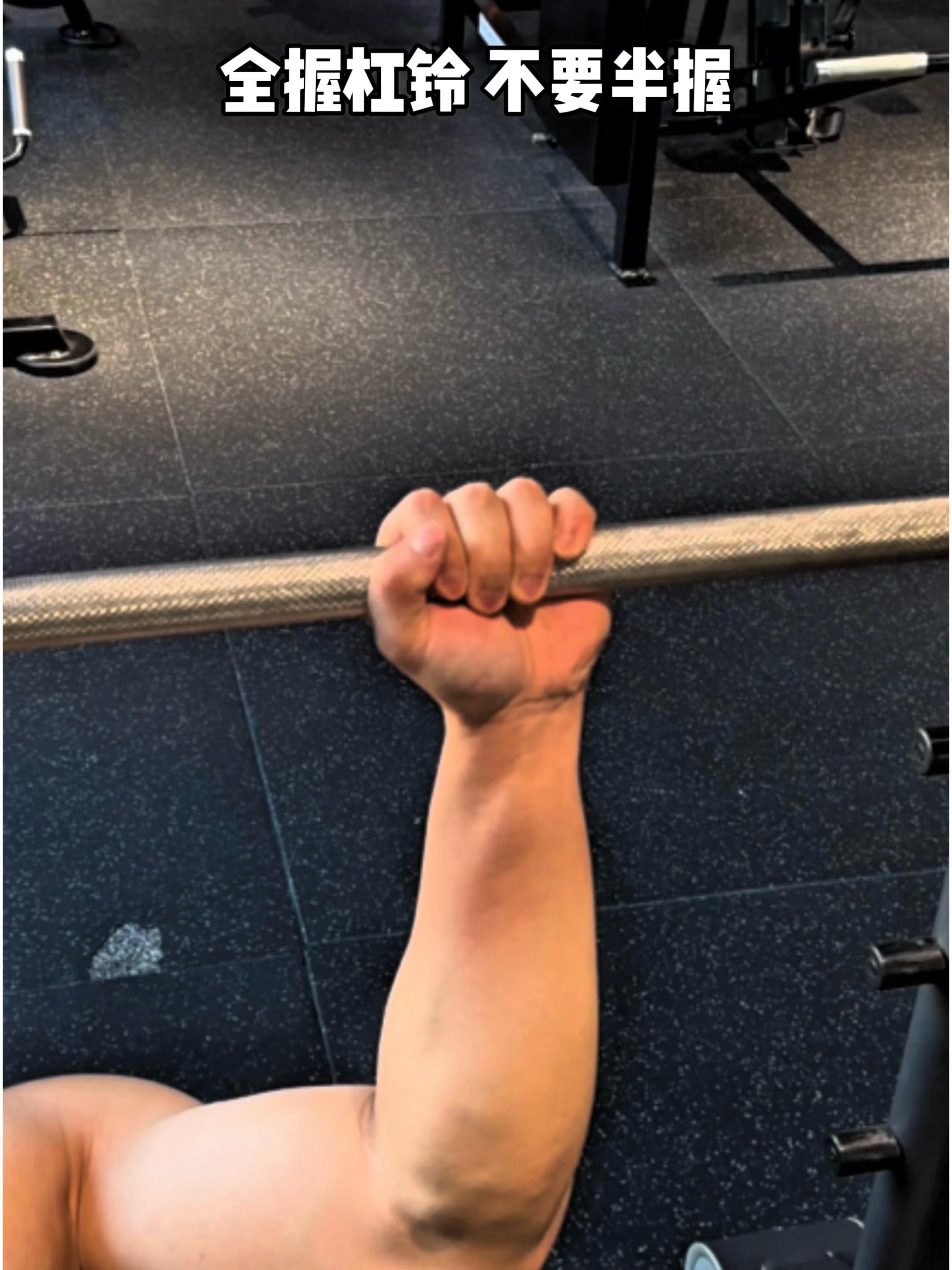 杠铃落至底部,刚好在锁骨下方约两根手指的位置,小臂垂直地面,这样可以最大程度的减少肩部压力;