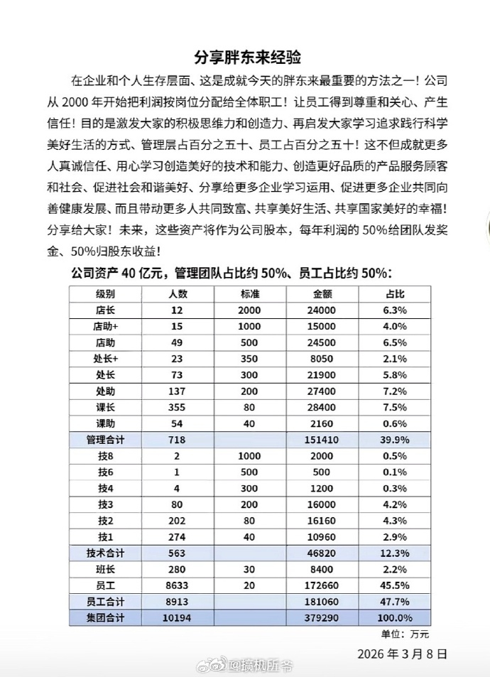 3月8日女神节,胖东来创始人于东来扔出“重磅炸弹”,将近40亿资产分了!管理团队