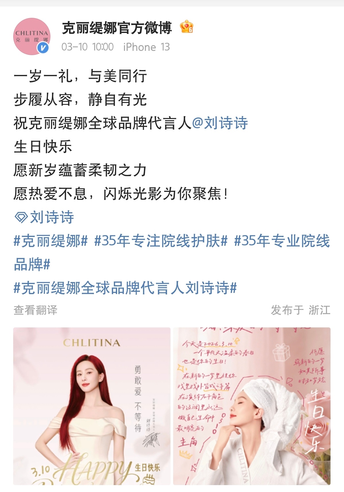 刘诗诗代言的各大品牌好用心,全都卡点排队送祝福