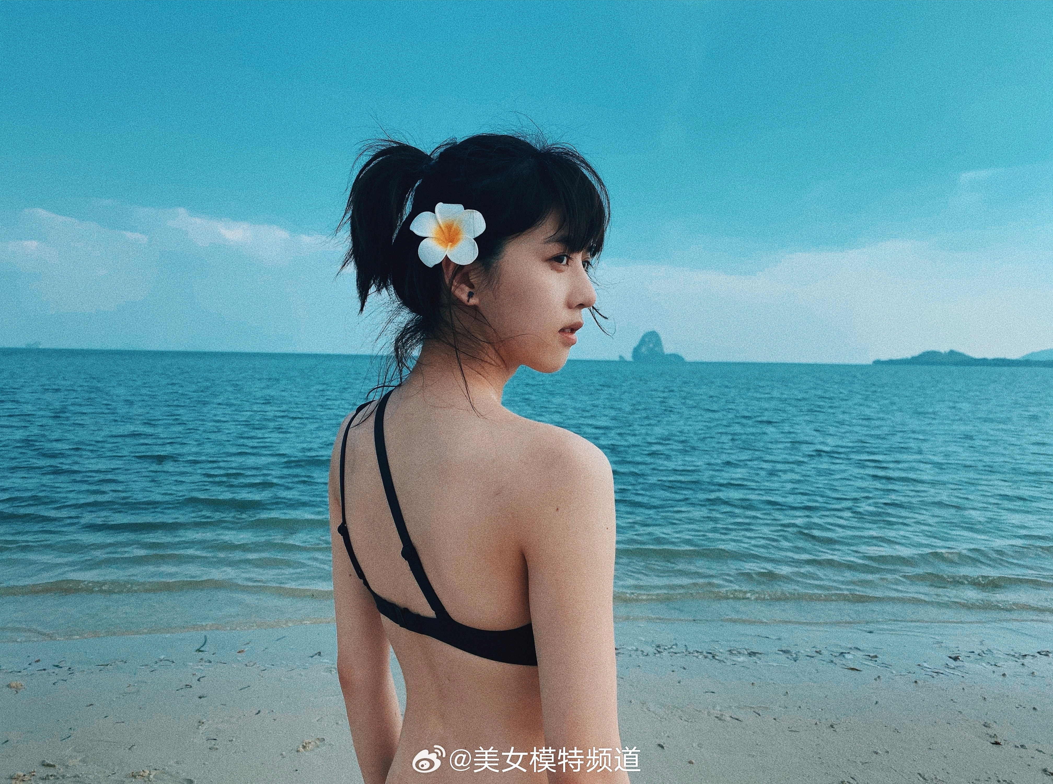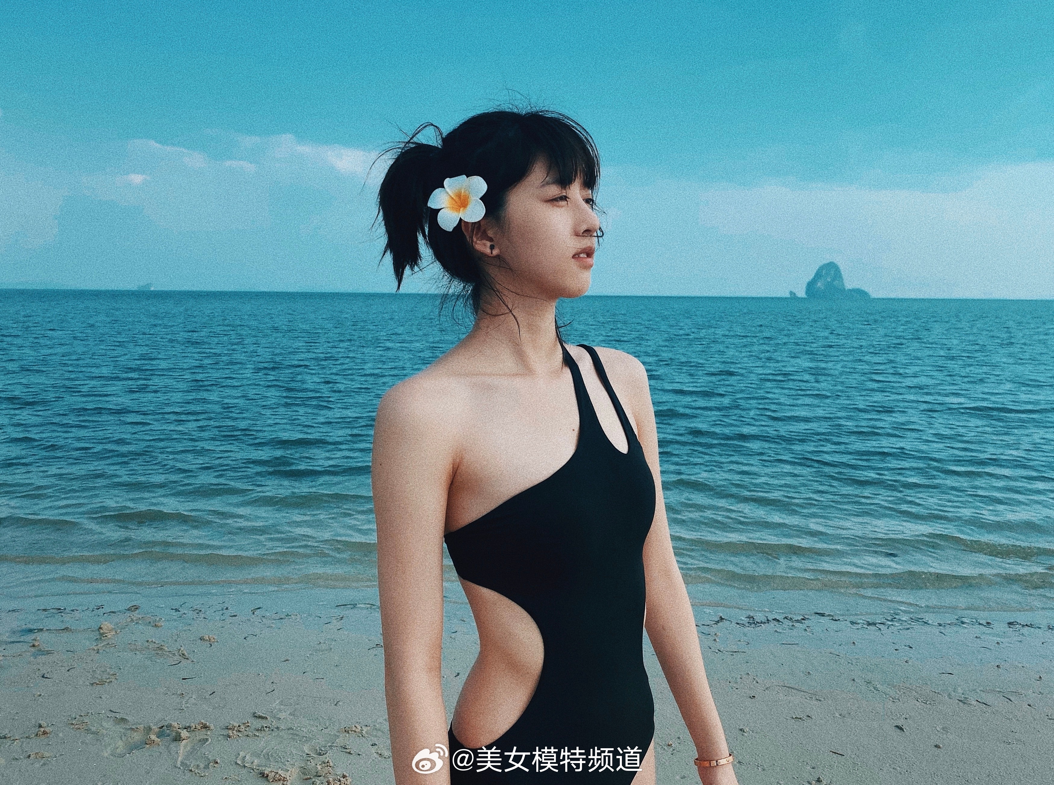 李凯馨黑色沙滩泳装高清美照