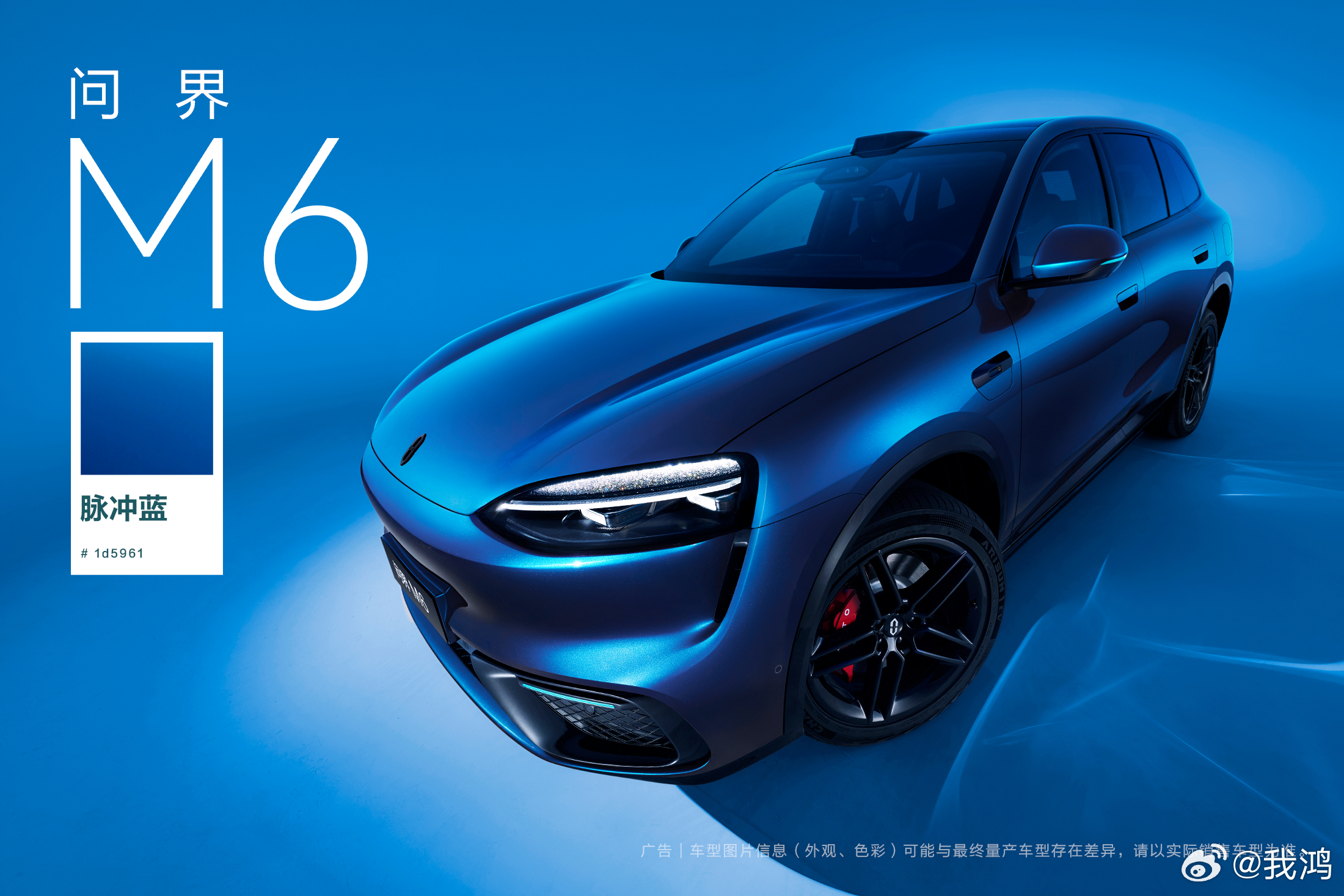 问界M6今天发了脉冲蓝官方配色,现在的节奏是每天发一款,谐音梗是“力挽狂蓝”,好