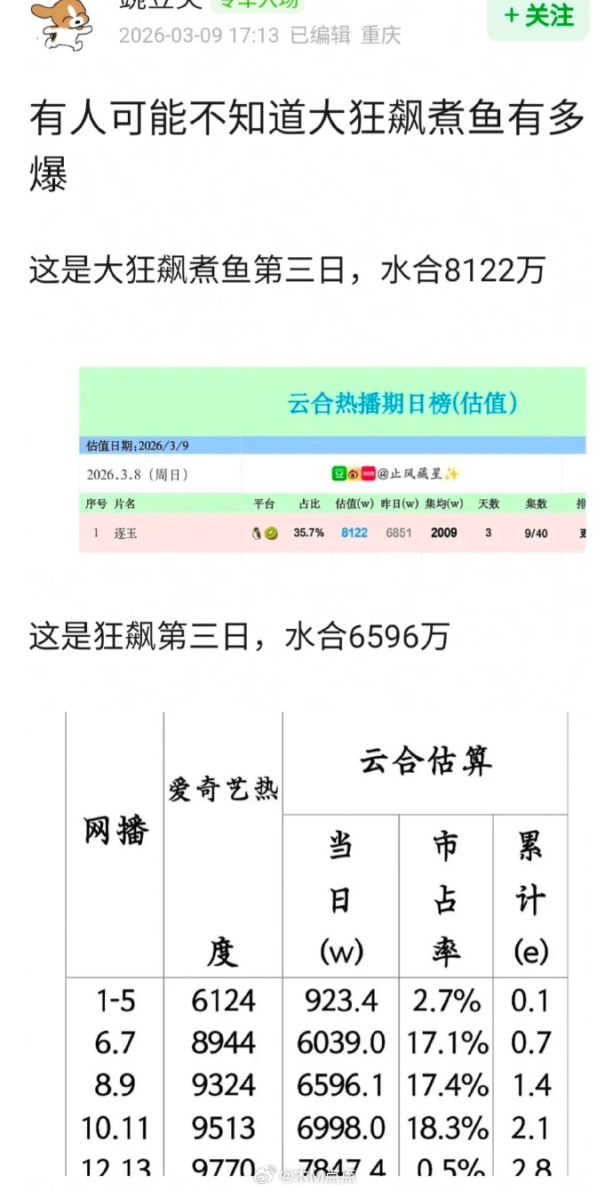 《逐玉》次日腾讯28514爱奇艺9385,微博首部破亿,微博某瓣登顶,次日灯塔