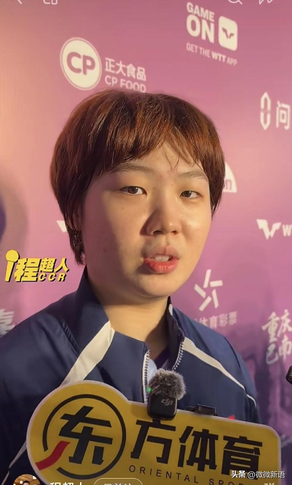 今天蒯曼的场外是于子洋,这也是两个人首次一起亮相比赛现场,赛前的时候于子洋帮蒯曼送拍,还帮忙挑球,看来这个周期是于子洋带蒯曼了,两个人磨合一段时间后,感觉还是不错的。 重庆冠军赛第一场女单比赛是蒯曼对阵萨马拉,蒯曼3-0赢下比赛,晋级女单16强。看到女队的韩菲儿、徐奕、祝启慧、杨惠泽都来观赛了,德华也坐在场外。这次女队来了四位教练:马琳、邱贻可、于子洋、任浩,于子洋也是第一个上班的。肖导也来了,挺好的,他现在是副总了,估计1000分以上和升国旗的比赛都能跟赛了。 在比赛开始前还有开幕式,看着也很热闹,在赛后采访中有记者问蒯曼有没有尝到重庆的美食,蒯曼说重庆有冰汤圆、冰豆沙之类的,蒯曼喜欢美食,特别喜欢喝奶茶,到了重庆肯定也喝到自己喜欢的奶茶了吧。接下来一天半的时间蒯曼没有比赛,可以备战下一轮了,下一轮蒯曼对阵曾尖和高桥布鲁纳之间的胜者。