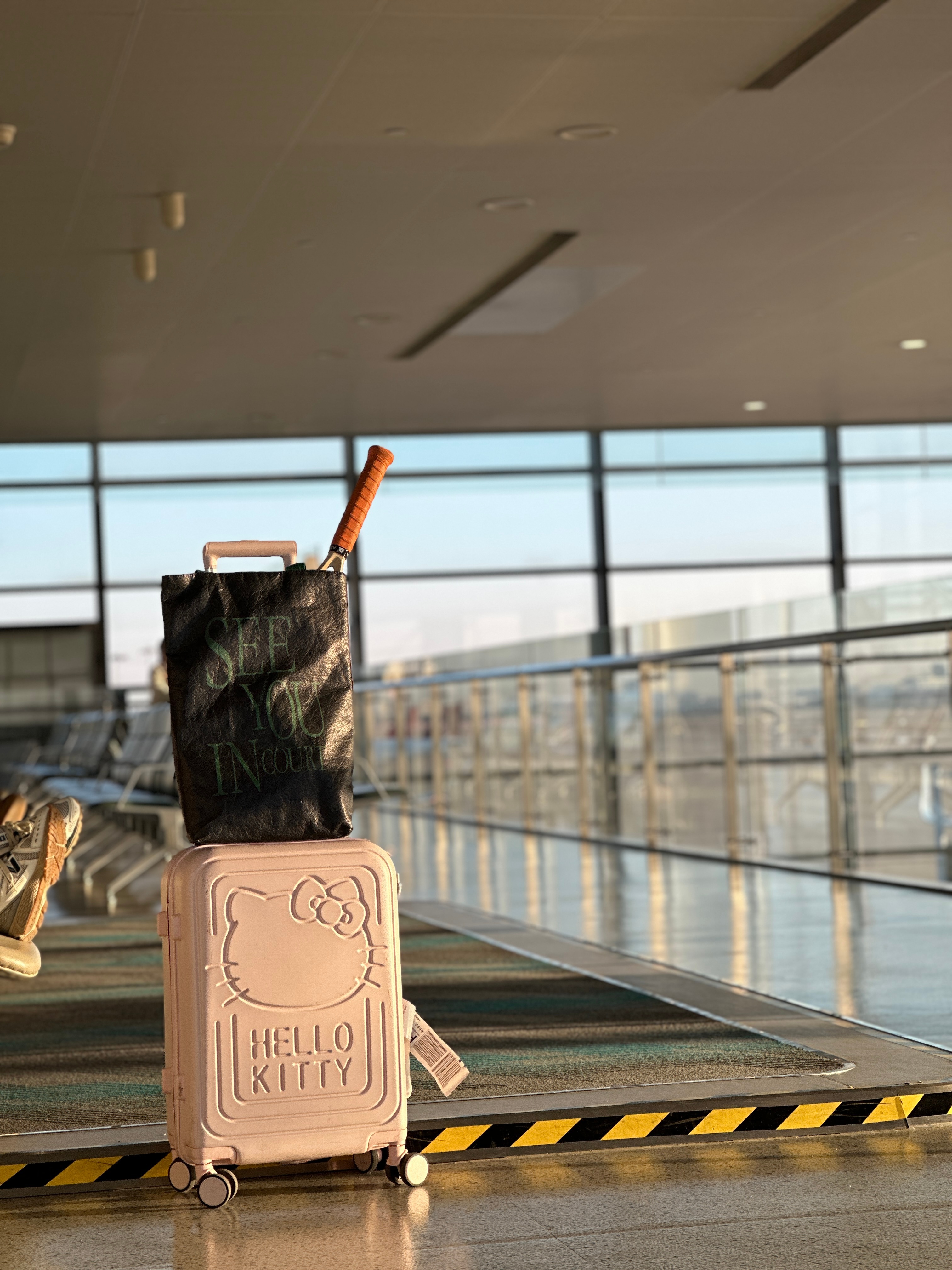 简直了,我们网球已经这么火了吗? 一大早虹桥候机时,看到可爱的Hello Kitty箱子上插着网球拍;刚刚在海口美兰机场,也看到背着网球包的女球迷。航程中一直播放的,竟然是辛吉斯的纪录片。