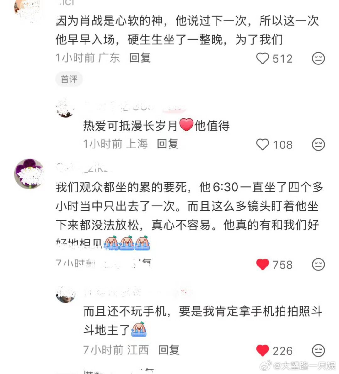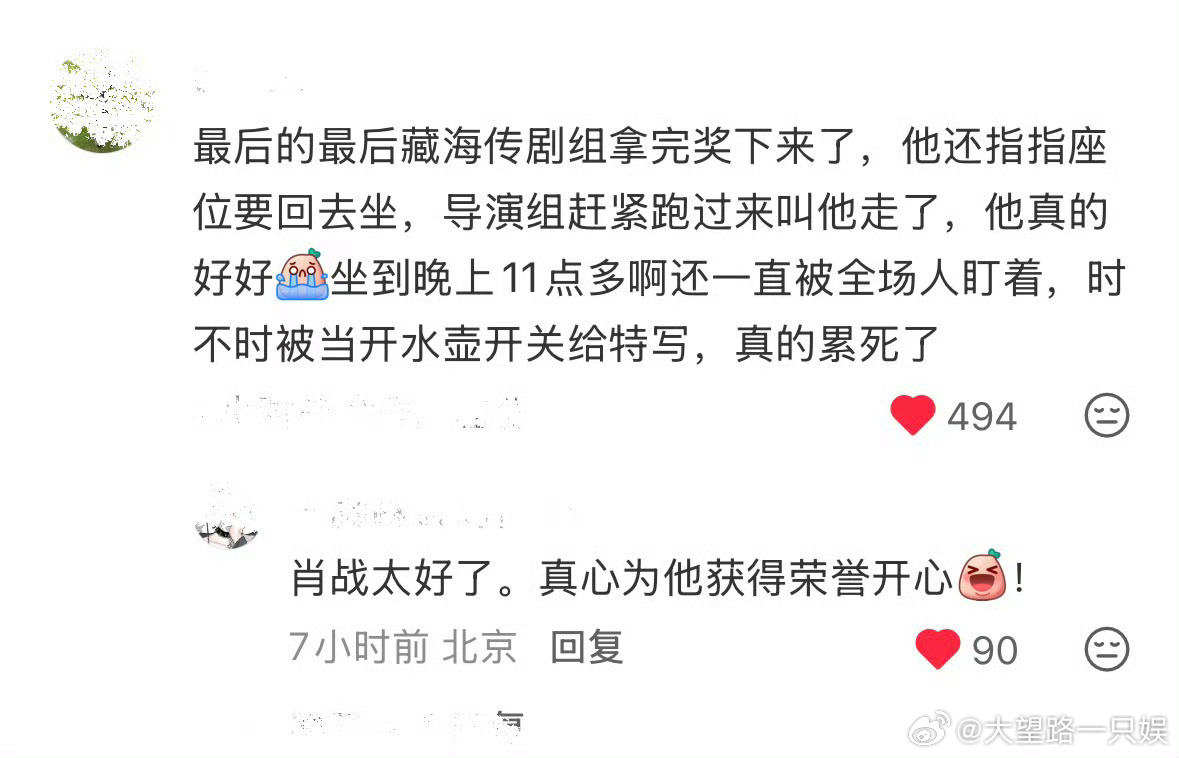 昨天在电视剧品质盛典上,肖战足足坐了将近五个小时。其实中间的时间都可以休息不坐在那里的,但他除了极少数必要离开的瞬间,始终在座位上他应该是是在用这种方式弥补上次粉丝没能多看看他的遗憾。当肖战的粉丝真的很幸福了,就这样被真诚对待了