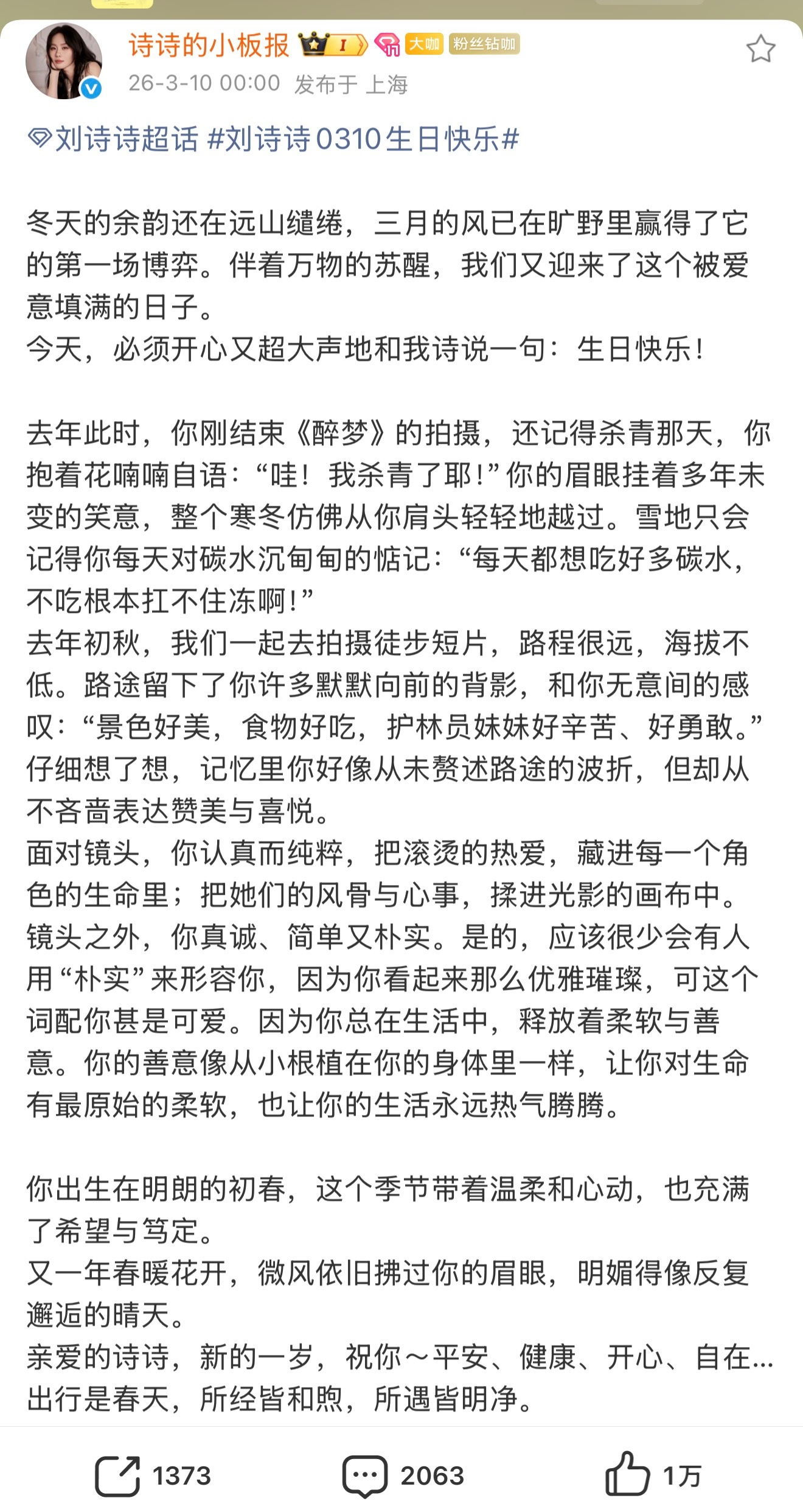 感觉刘诗诗工作室的宣传写的好用心一看就是带着爱意写的好真诚的文字