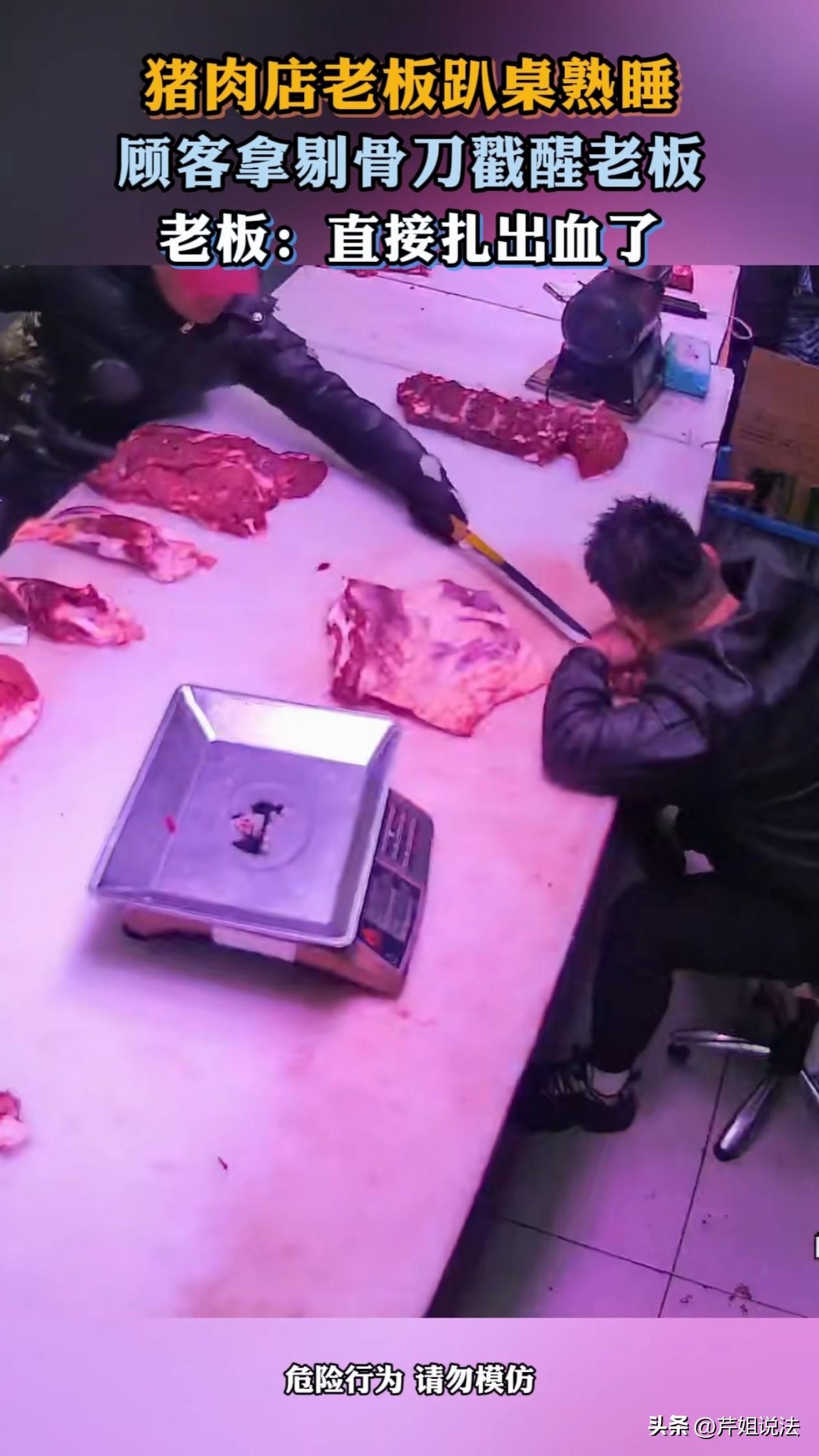 太虎了!辽宁沈阳,在一农贸市场的猪肉摊上,老板趴在摊上睡着了,一男子过来拿货,没想到竟干出这种举动,这操作真是把人看傻了,险些酿成大祸。 据悉,在一个农贸市场的猪肉摊前,老板忙活了大半天,累得够呛,趁着没客人的空档,趴在摊子上就睡着了。 这个时候,一男子骑着电动车到摊位前来拿货,看着老板睡得正香,想要把老板叫醒,但这奇葩的叫醒方式,真是让人直呼“太虎了”! 监控视频拍得清清楚楚,这老哥骑着电动车停在摊位前,瞅着趴那儿睡觉的老板,想叫醒他拿货。 你说叫人起床,喊一嗓子“老板!来活儿了!”不就完事儿了吗?再不行,绕过去拍拍肩膀也行啊。 可这位倒好,可能是嗓子不舒服懒得喊,或者是觉得距离有点远,怕出声老板听不到。自己又懒得下车,不愿绕过摊位把老板拍醒。 只见他就坐在电动车上,一手扶着车把,另一只靠近摊位的手,顺手就拿起了摊位上的剔骨刀,这刀子细细长长的,尖端处还挺锋利,直接开始往老板的手上轻轻戳过去。 这本想着是想把老板戳醒,也没用力,但这毕竟是常用来剔骨的刀具,锋利的刀尖还是把老板的手扎出血来了。 感受到痛感的老板,猛地惊醒,看着自己的手检查了一会,只是略微出血,并无大碍。 这老板算是个好脾气,见手没啥大事儿,也没生气,立马就把货拿给男子了。据老板描述,那个顾客是自己的老主顾了,是在跟自己开玩笑。 虽说这顾客也是无心的,但是这个举动未免太虎了,叫人的方式有很多种,却偏偏选了个这么危险的方式。 这毕竟是把剔骨刀,天天处理生猪肉,这刀上早已滋生很多细菌,比如猪肉上的大肠杆菌、葡萄球菌。 如果被扎破的很严重,感染了,轻则可能引发伤口化脓,重则得蜂窝织炎,甚至败血病,那可不是闹着玩的!必须要赶紧清创消毒,打抗生素才行。 这事儿幸好没酿成大祸,假如这刀在戳向老板时,老板正好想换个姿势睡觉,这刀就有可能会戳到老板的头部,那性质可就恶劣了,如果老板被伤的很严重,是完全可以起诉对方的。 从刑法来说,行为人因疏忽大意或过于自信,导致他人重伤,是可以判其过失致人重伤罪的,会处三年以下有期徒刑或拘役。 从民事角度来讲,根据民法典,侵害他人身体造成损害的,要赔偿医疗费、护理费等合理费用。 所以像这种用剔骨刀戳手,不管是不是“玩笑”,只要主观上有过失且造成重伤,就可能触刑,就算没重伤,民事赔偿也少不了。 老板也是人好心善,并未对顾客追究任何责任,仅当做玩笑看待。但如果遇到凡事都斤斤计较的人,那男子可没这么幸运了,赔对方个万儿八千的都是有可能的。 生活中,再熟的人,再小的动作,都要把安全放在第一位。叫人起床,喊一嗓子的事儿,等人醒来,等几分钟的事儿,何必非要拿把刀去戳呢? 该细心的时候就得细心,尤其是涉及到刀具、火源这些危险物品的时候,更是得多加小心。这把刀,平时是用来剔骨头的,那可不是开玩笑的工具。 最后,给这位老板点个赞,心胸宽广,不计较。 也给这位顾客提个醒,下次再叫人,可千万别这么虎了! 生活中多一分小心,少一分危险,别让无心之举,酿成终身遗憾。 对于上述事件,您有什么看法吗?欢迎留言交流。 来源:生活有点料
