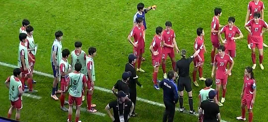 朝鲜女足罢赛5分钟,换不来一个越位改判。 王霜上半场补时打进制胜反超球,边裁最初判了越位。 VAR复核确认手臂不计入越位判定,进球完全合规。 朝鲜全队加教练组堵在场边不肯回场,比赛中断了5分钟。 越南籍主裁给朝鲜主帅出示黄牌后,直接提前吹停了上半场。 他们急的根本不只是这一个球。输球拿小组第二,八强就得硬碰东道主澳大利亚,中国女足头名出线只会碰弱旅。 而且他们要求主裁亲自看回放的诉求,本身就不符合赛事规则。 你觉得亚足联后续会对这次罢赛行为开罚单吗?