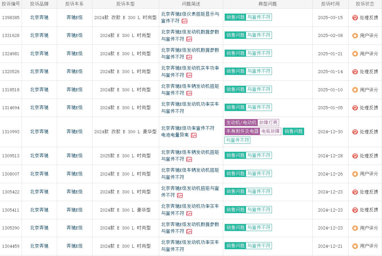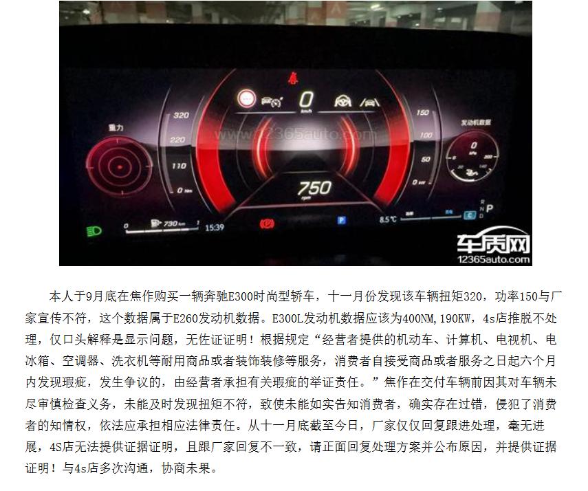 【315汽车维权】奔驰E300疑似被阉割,车主花高价买低配 奔驰E级深陷“参数造假”风波,2024年7-10月生产的1.7万余辆国产E级虽完成召回,但核心问题仍未解决。多位25款E300L豪华版车主花50多万提车,发现仪表盘显示的扭矩、功率竟是低配E260L的数据,官方标注6.2秒的零百加速,实测超7秒,5万的差价换来天差地别的驾驶体验。4S店仅建议通过系统升级解决,却拒绝提供书面保障,部分车主升级后还出现车机黑屏、门把手不弹出的问题,加速表现也未改善。此举被质疑是车企为降本故意篡改软件,涉嫌商业欺诈,律师建议车主保留证据,必要时起诉主张退一赔三。