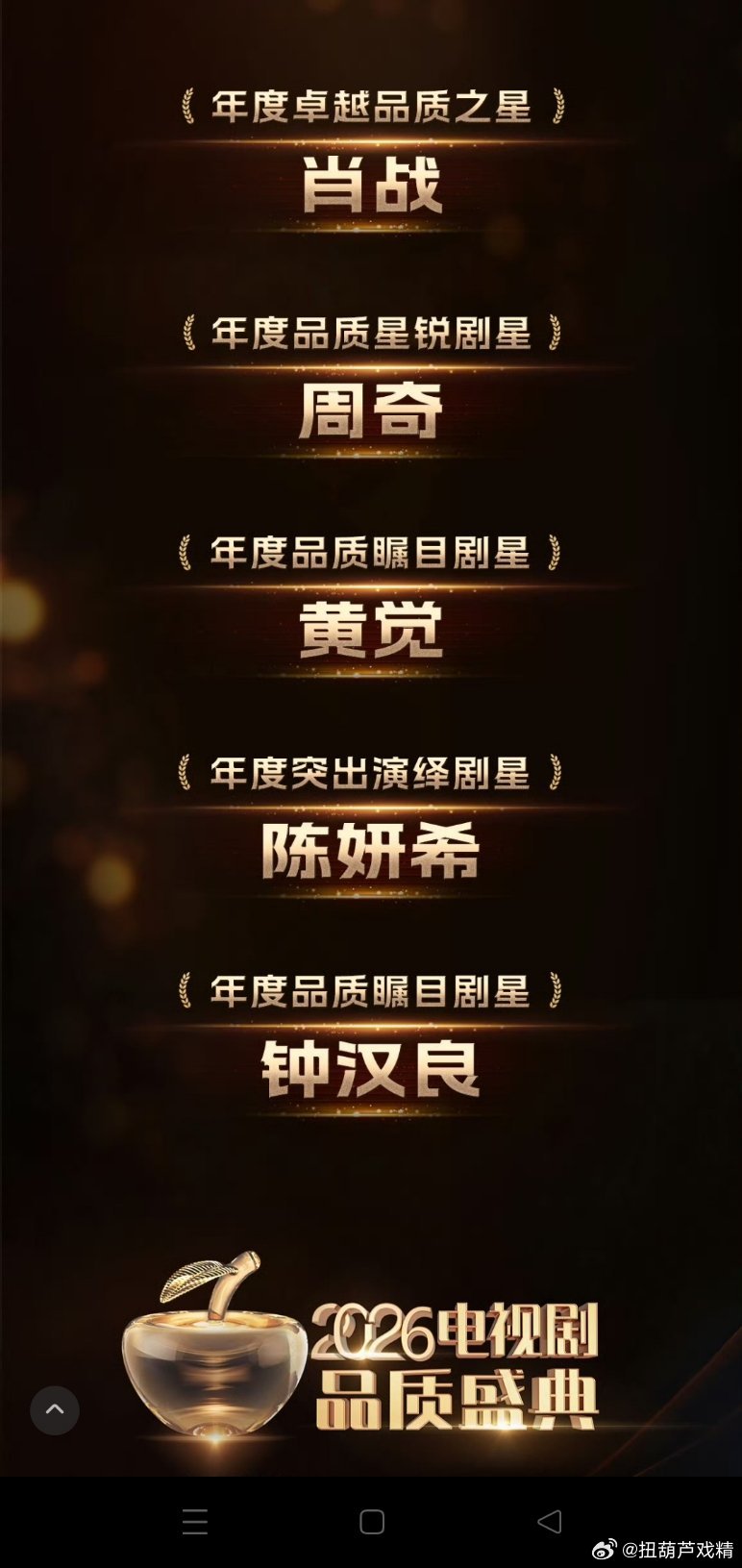我说啥来着,我的眼睛就是尺,连只出来一集的钟汉良和陈妍希都拿奖了,都没有女主的份,没拖后腿就不错了,希望肖战以后的女主是绝顶美女吧
