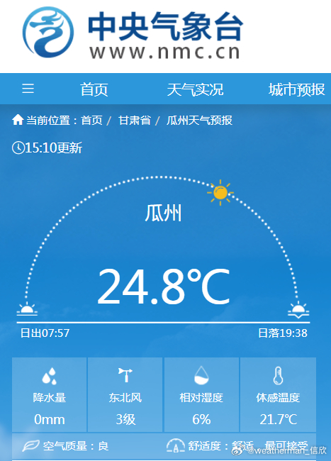 【气温破纪录】今天在冷空气到来前,甘肃西部一带气温回升,部分站点气温打破当地3月上旬纪录。比如15点10分,敦煌23.5℃、瓜州24.8℃。