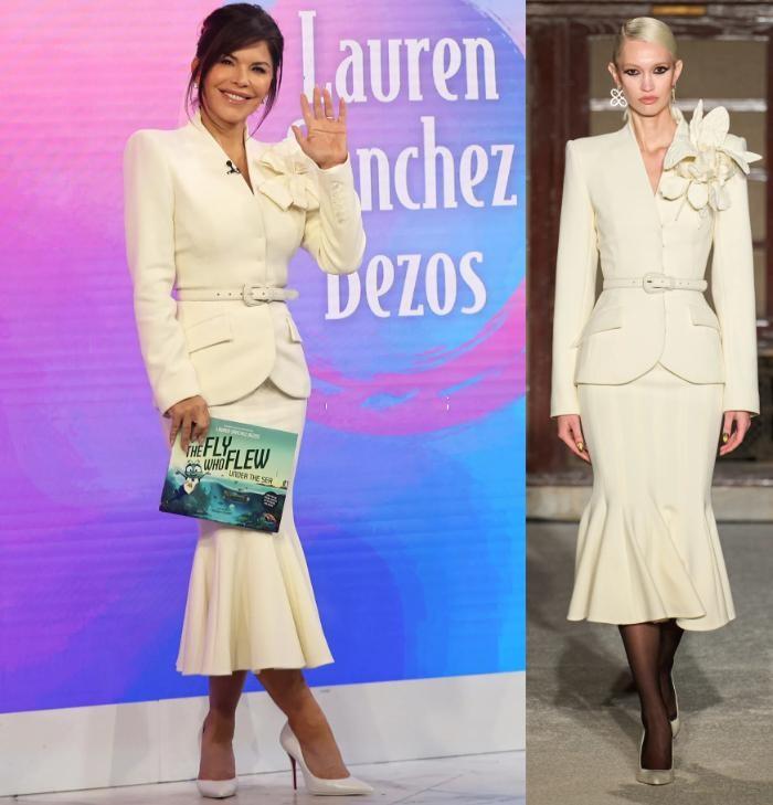 2024年桑切斯出了一本书叫《飞向太空的苍蝇》,儿童读物,非常可爱。 当时她还是贝佐斯的未婚妻,排场不容小觑,卡戴珊母女和米兰达可儿都为她宣传捧场。 如今两年过去了,桑切斯已经成为贝佐斯官方正妻,身价大涨财富自由,仍没忘了自己的作家身份,又出了一本童话书,叫《海底飞行的苍蝇》。 已经挑战了上太空,看来下一步桑切斯要和这小苍蝇一样下海底了啊! 桑切斯穿着简单的白色工字背心配深粉色长裙,55岁了还有这等身材实在让人羡慕啊! 老婆出书,贝佐斯自然也要出来撑场面!桑切斯录完宣传节目后,两人又高调约会,秀了一波恩爱。 贝佐斯老来俏,从nerd变潮男只需一个新老婆,大晚上的依然戴着一副茶色墨镜,头发胡子一样短,密密扎扎的很显年轻。 翻领大衣配圆领针织,修身西裤黑色尖头皮鞋,贝佐斯真是讲究了不少。 桑切斯依然是贵妇打扮,礼服裙外面披皮草,耳环叮当笑容灿烂,一手拿精致小包,一手被贝佐斯牢牢牵着,一低头也是风情万种。 一直写儿童读物,桑切斯那强悍的外表下必然有颗童真的心吧! 人都是越活越回去的,贝佐斯也不例外,想来从小没有爹,5岁才有了继父的贝佐斯婴幼儿时期是缺少亲密关系的,碰上桑切斯,那真是他的救赎。 想想看,桑切斯床头为贝佐斯念童话的场景,是不是有那么些治愈呢!