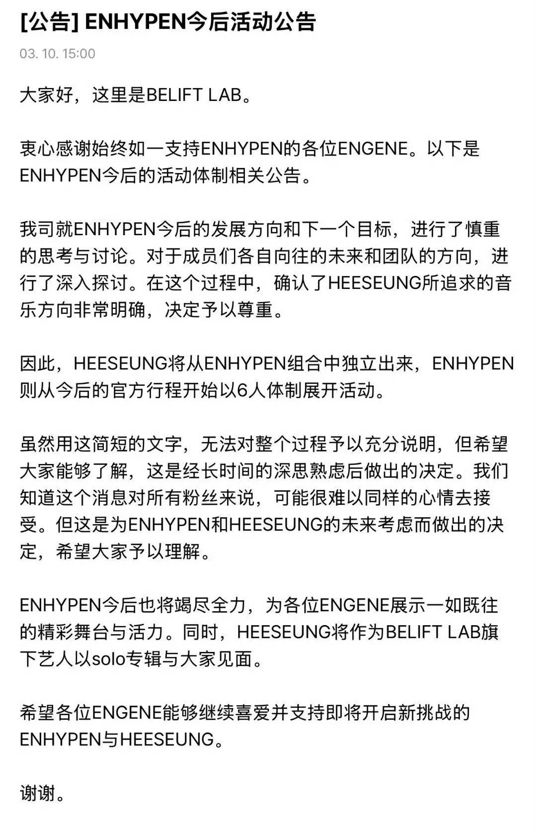 好突然!!!李羲承退团了,他将从ENHYPEN退出,ENHYPEN秒变六人制。