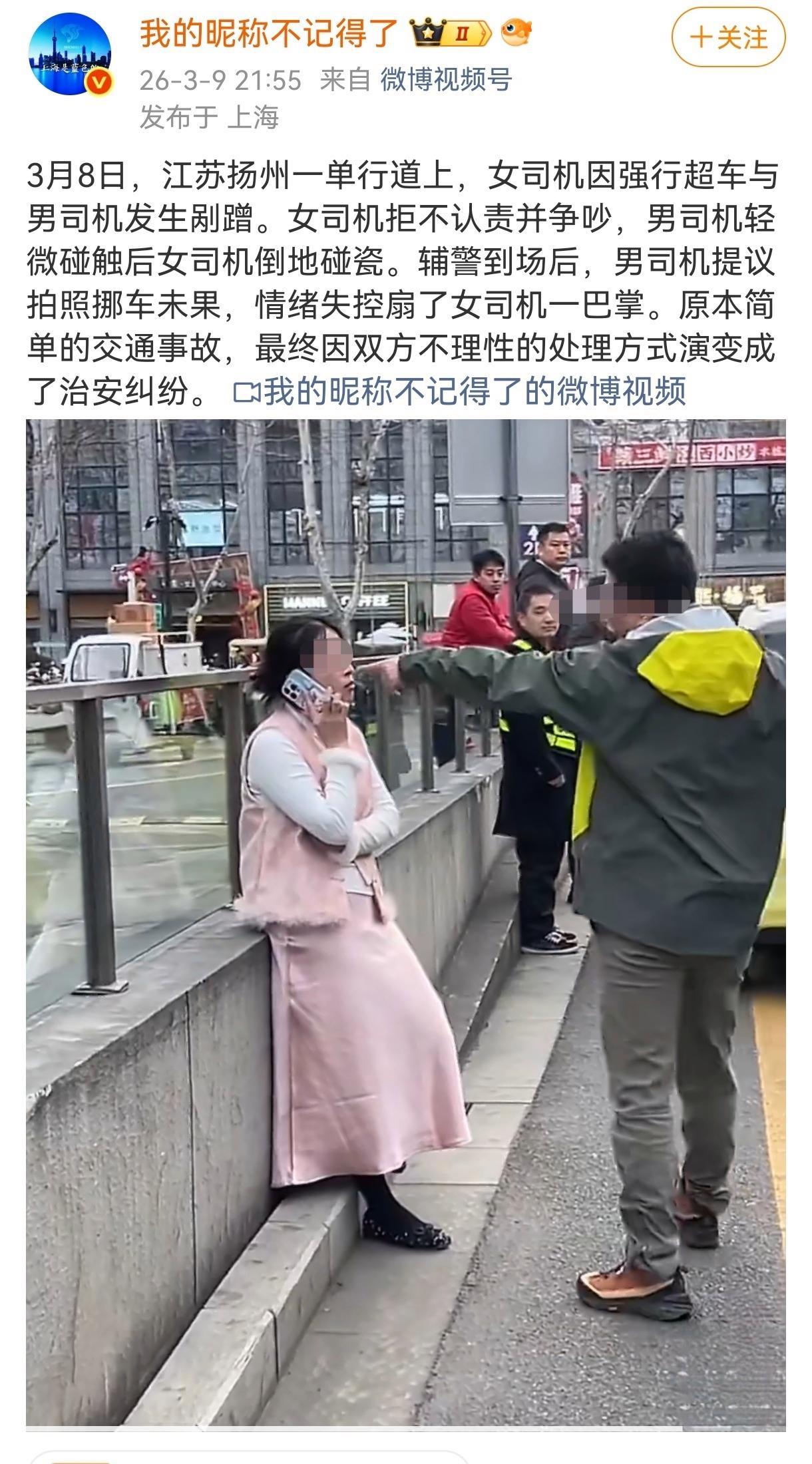 3月8日江苏扬州单行道上演的剐蹭闹剧让人唏嘘不已。 (个人观点仅供参考,无任何不