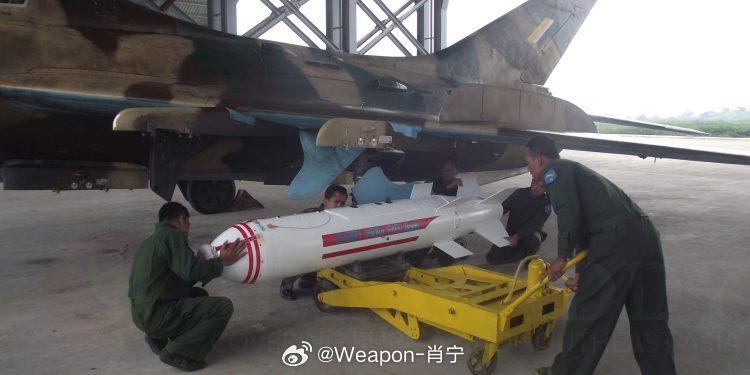 最后的五爷,这是缅甸空军的强五攻击机,在加挂老面从中国进口的LY-502温压炸弹