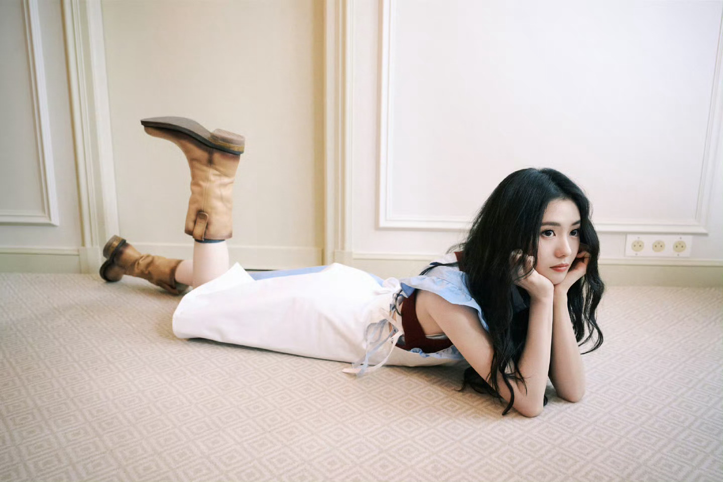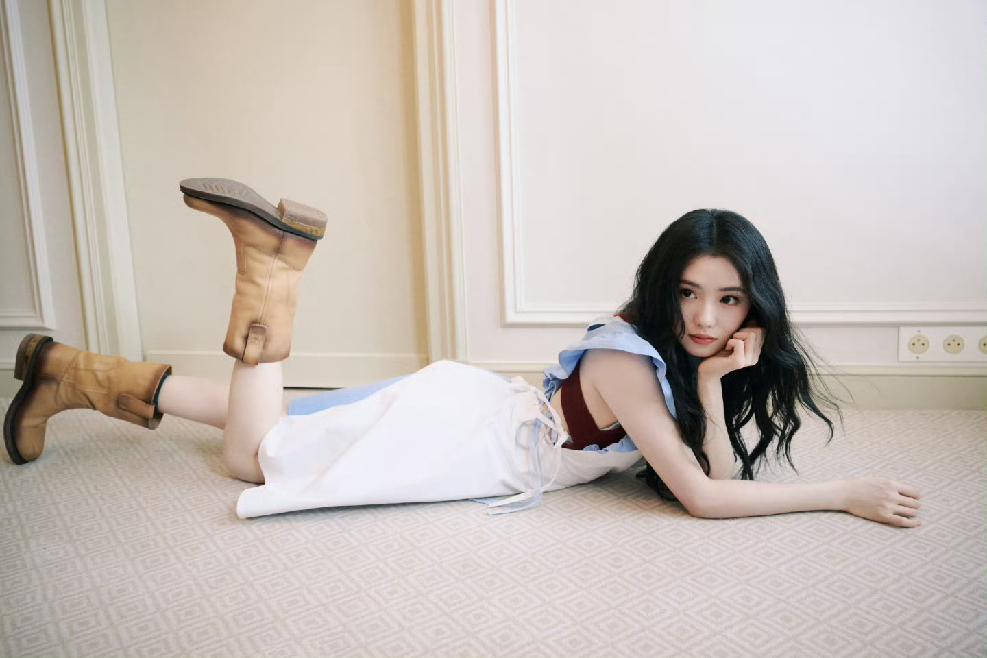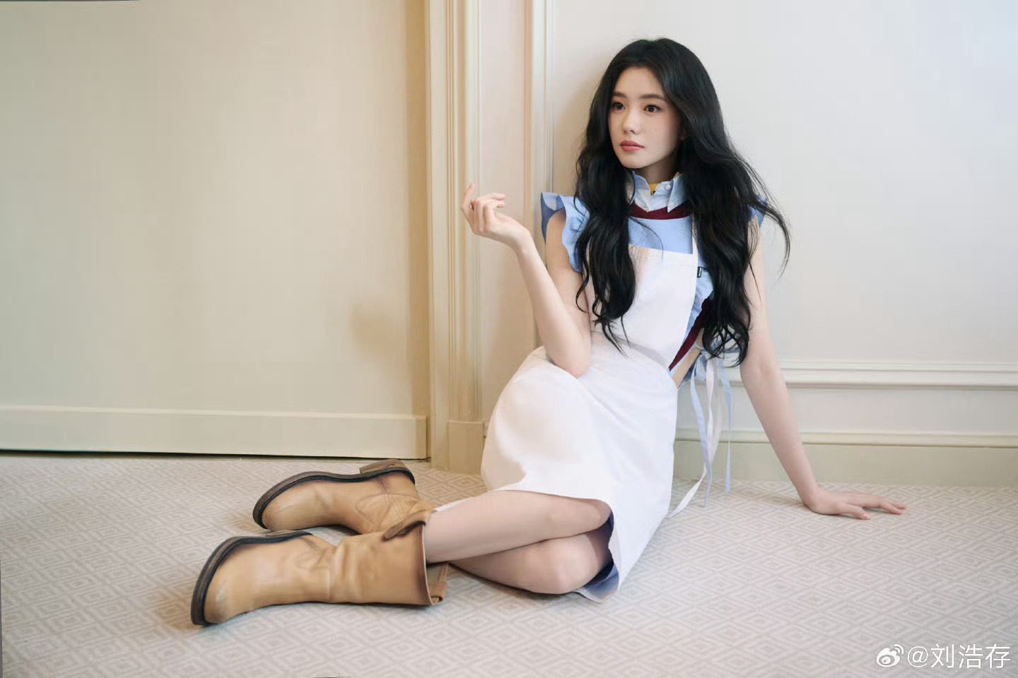 漂亮的Miu Miu 上线!即将出席2026秋冬系列时装秀。蓝白色调衬托清爽气质,长卷发增加俏皮感,秀场见~