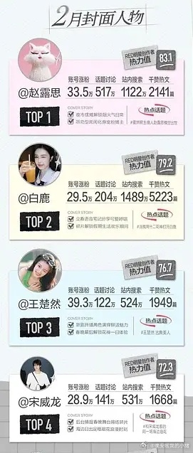 🍠二月明星热力排名,宋威龙连续两个月男明星第一☝️