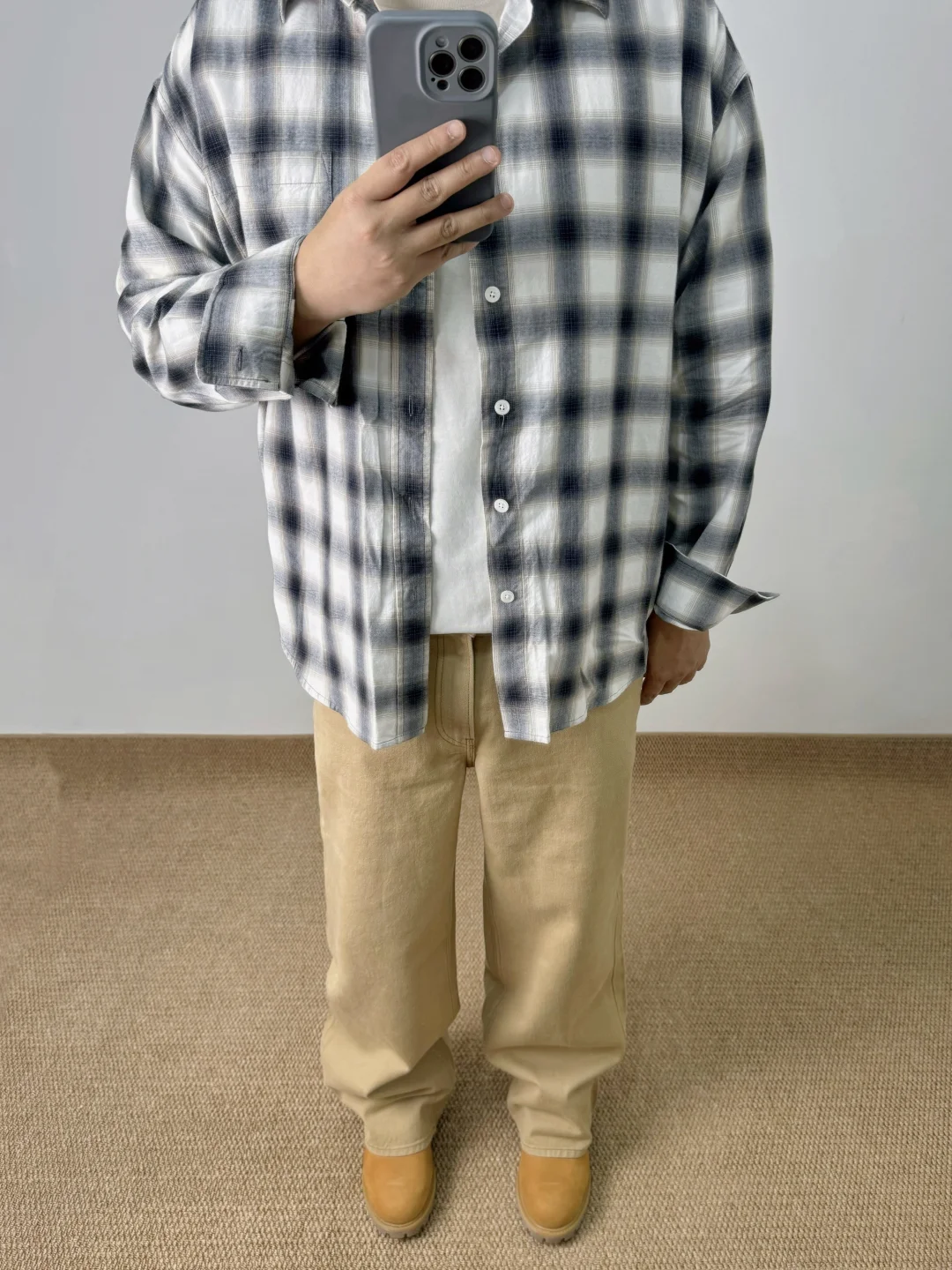 ☀️还没找到搭配大黄靴的牛仔裤么,这条深米色被我挖到了;直筒版型就是无脑搭,早八人套个衬衫就可以出门了 . —————— . 👔Massulti / 格纹衬衫 // L . 👖Uniqlo JWA / 482873 // 84A . 👟Timberland / 大黄靴 // 42 . —————— . ✏️Taille:178cm 75kg // EU42 CHN265