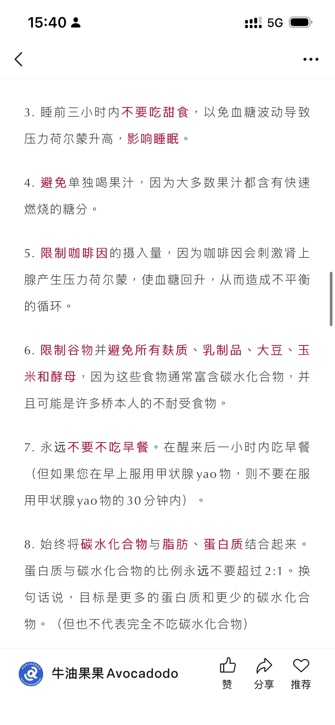远离加工碳水,天然碳水比如红薯、浆果可以适量吃