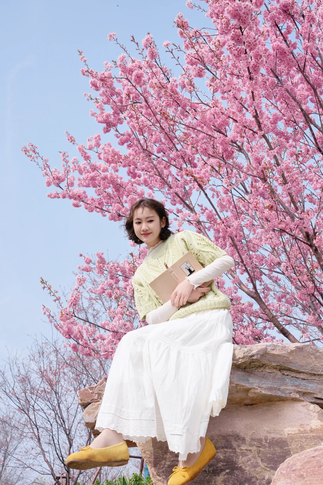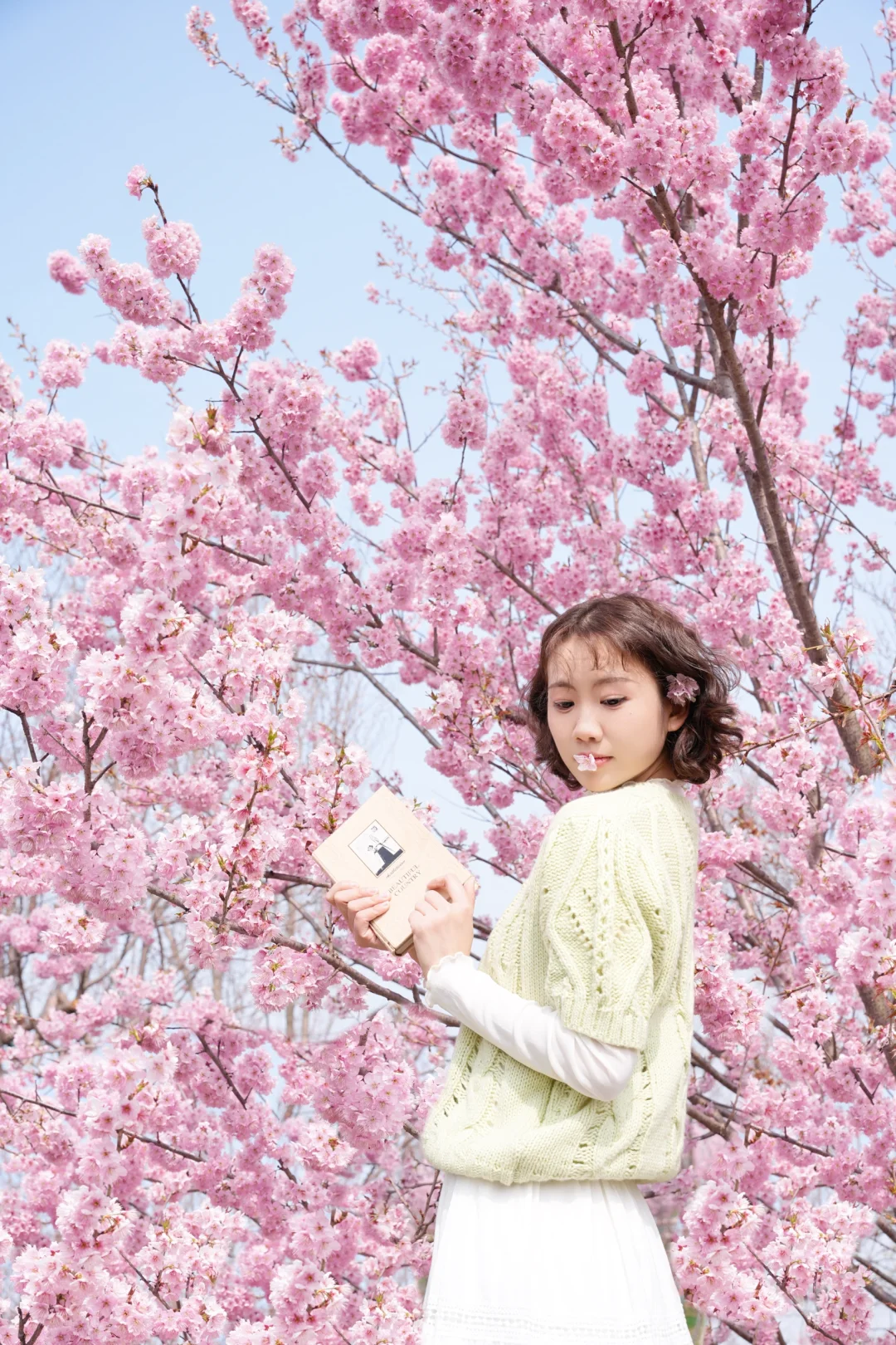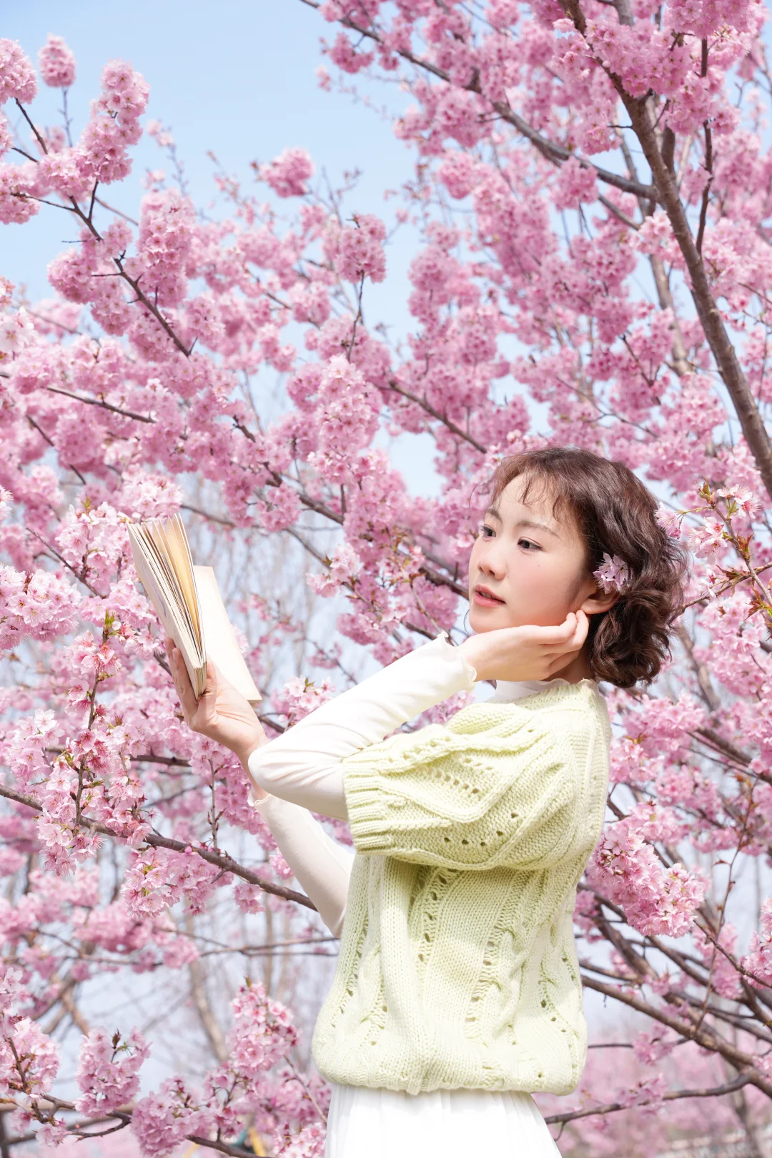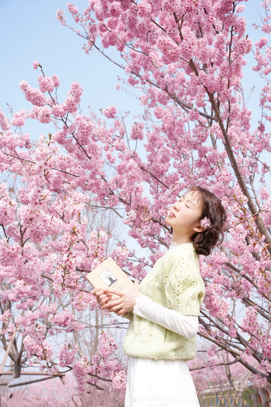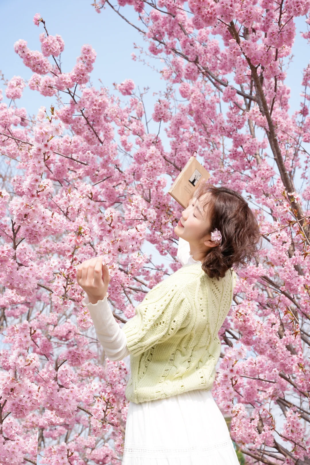 武汉的樱花已经next level啦 3.9武汉樱花实拍!!! 给大家整理了一份超实用的樱花拍照姿势 赶紧🐴住 · 所有机位都是以花为背景仰拍,这样画面会更丰富 🔸抱书侧低头看镜头 🔸仰头摸花 🔸对着镜头比心 🔸双手捧花对着镜头吹花瓣 🔸把花朵含在嘴里 侧身低头 🔸拿着书仰头看花