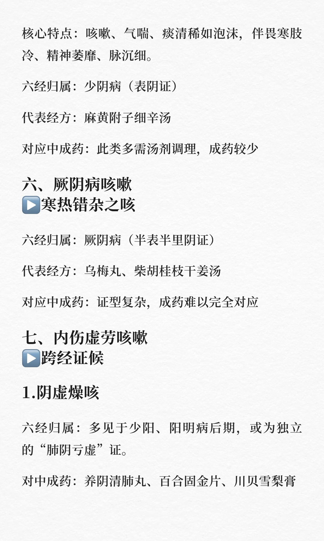 咳嗽六经辨证与中成药▶️经方
