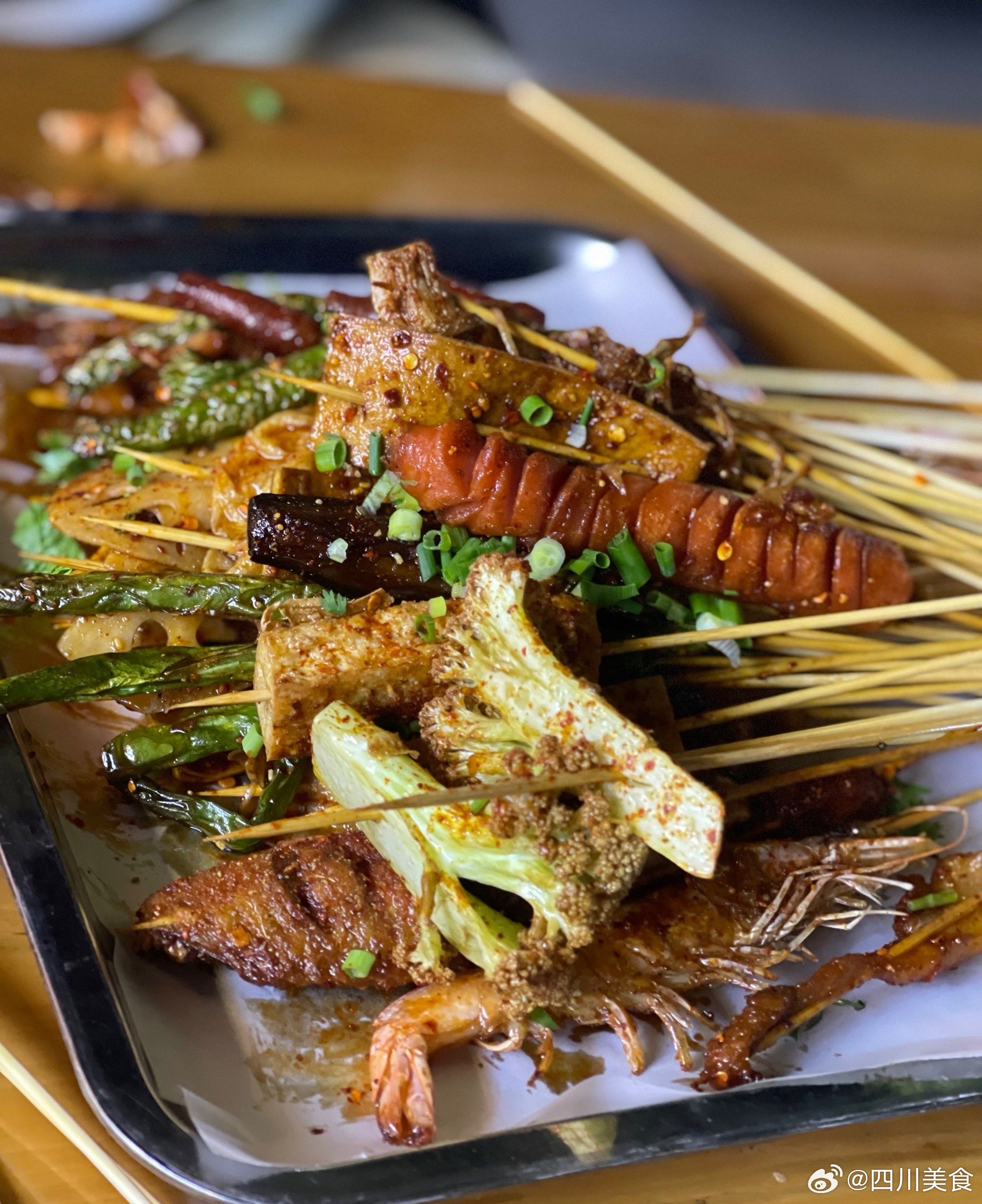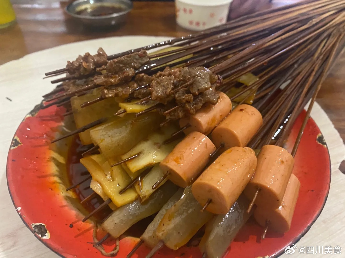 街头串串:很小的一个苍蝇馆子,是小时候校门口一毛钱一串的麻辣烫味,碟子有四个口味,干碟、油碟、糖醋、糖醋麻辣,油碟跟传统的不一样,应该有卤油一点小红椒之类的,蘸着吃很巴适。