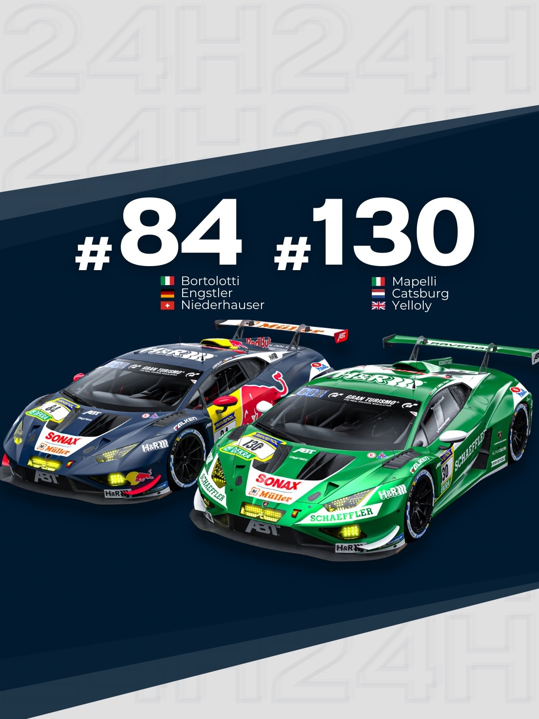 👀一台Huracan GT3 Evo2由红牛赞助,84号代表红牛的创立年份;另一台由舍弗勒赞助,绿色涂装经常在DTM的宝马上看到,130号代表ABT成立130周年