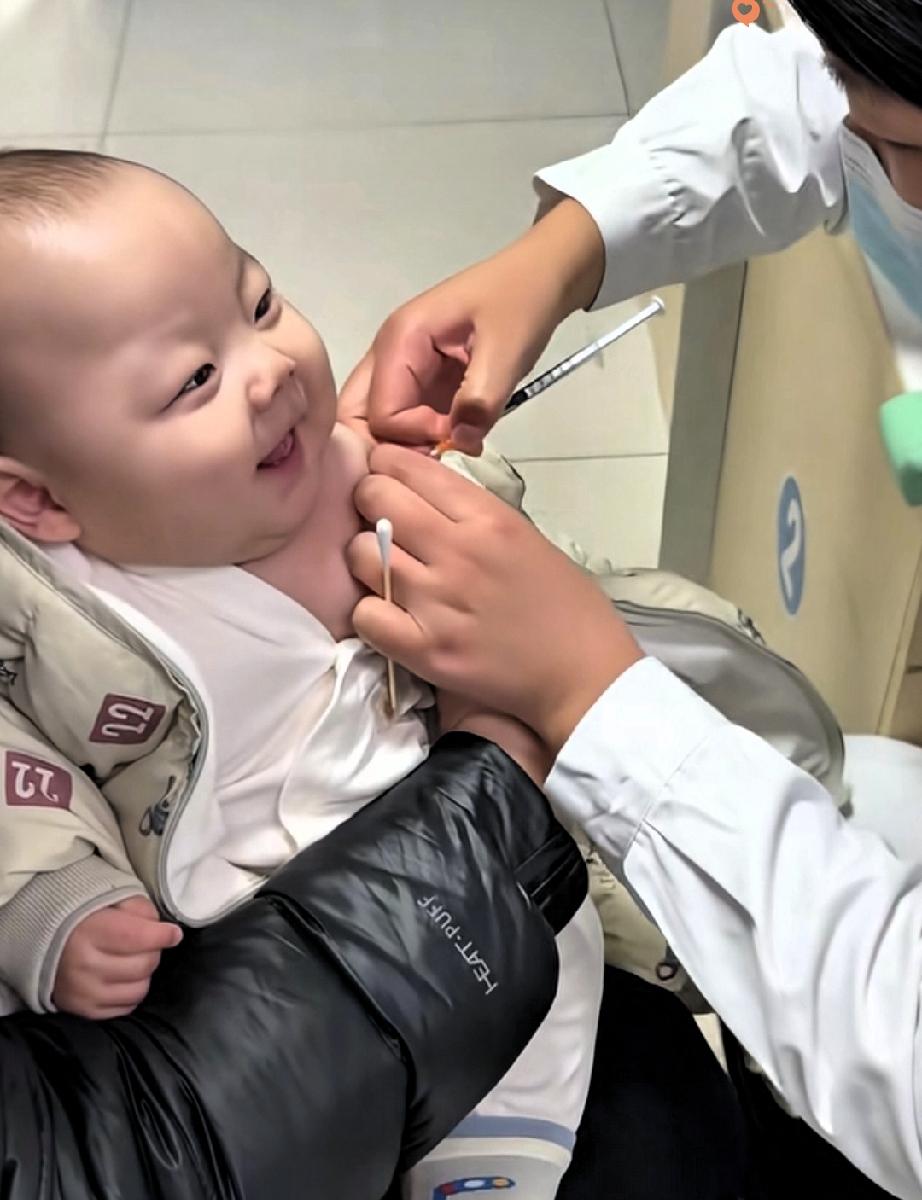 山东济南这娃打疫苗的反应,承包了我一整天的笑点! 爸爸带着4个月的宝宝去打针,小家伙看到护士小姐姐就咧嘴笑,脱衣服的时候还以为在玩,瞪着圆溜溜的眼睛盯着人家,那小模样,生怕自己不可爱。 针扎进胳膊的瞬间,宝宝先是愣住了,估计大脑还没反应过来发生了啥。 等药水推进去,才“哇”的一声哭出来,小脸憋得通红,委屈得不行。 这小表情简直太真实了,像极了以为能靠卖萌躲过一劫,结果还是逃不过的样子。 其实宝宝的这些小反应,不就是成长里最治愈的小插曲嘛,笨拙又可爱,看得人心里软乎乎的。 你家娃打疫苗时,有过什么搞笑又可爱的瞬间吗?评论区分享一下呗!