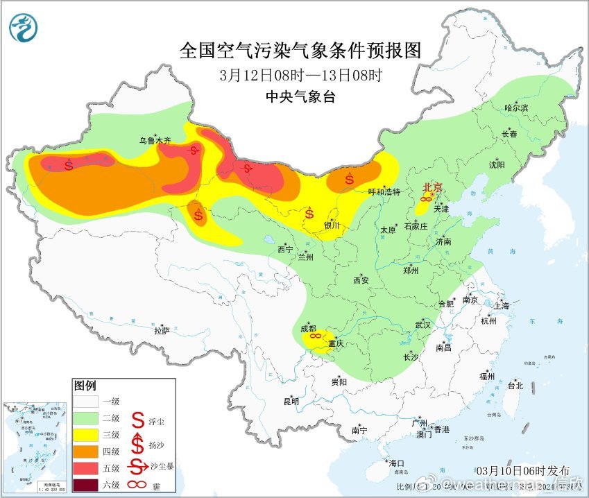 【大风 沙尘】未来2天冷空气东移南下,新疆甘肃内蒙古等地将出现大风沙尘。今天18时,中央气象台发布沙尘暴蓝色预警:预计3月10日20时至11日20时,新疆东部和南部、内蒙古西部、甘肃西部等地的部分地区有扬沙或浮尘天气,其中,新疆东部、内蒙古西部、甘肃西部局地有沙尘暴或强沙尘暴。