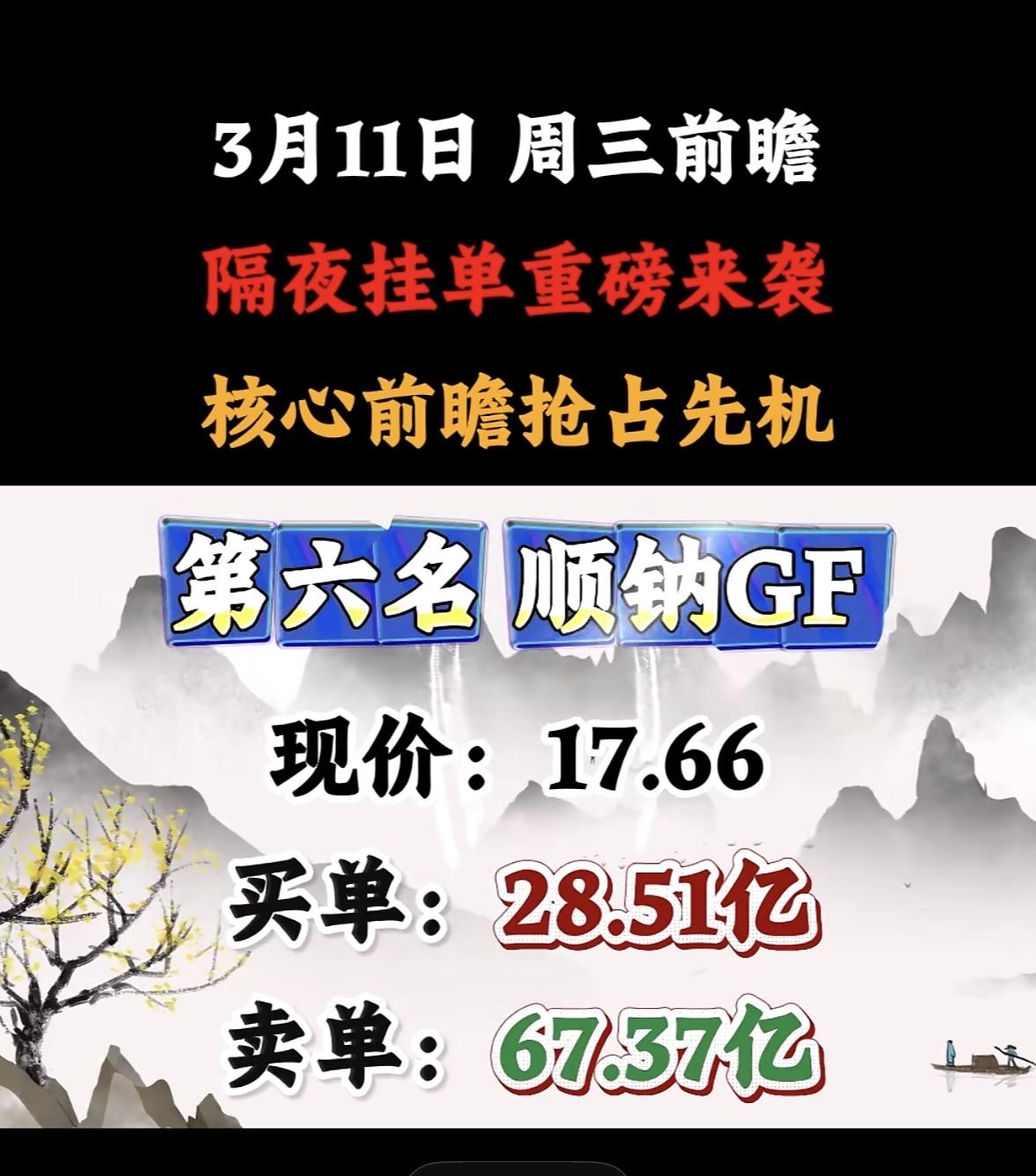 3月11日周三前瞻隔夜挂单前8名重磅来袭,核心前瞻抢占先机!📈📈📈 股市