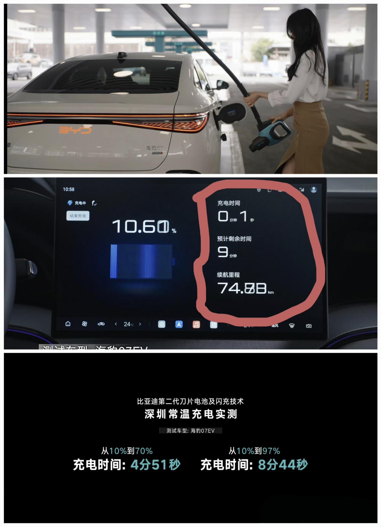 比亚迪的闪充,低温(零下30度)给电池充电,有没有水分? 电池是不能0度以下充电,那比亚迪有没有事先偷偷给电池加热? 本文解读: 图1: 零下20度哈尔滨大唐充电测试,我们可以看到,插上充电枪后到1分38秒之间的时候,车辆电量都没有显示,也没有显示在充电,这段时间其实在预热。 直到1分41秒以后,电池续航显示和电池百分比显示才出现,说明这才是真的开始在充电了,预热结束。 大唐整个充电时间,11分钟,其实是包括最开始给电池预热时间的,理论上真正充电时间更短。 由于大唐在低温零下20度放了一晚,电池温度太低,此时不能够直接给电池充电,需要先加热电池至少到10度以上,这是行业规律,通用做法,所有车企都这么干。 同理,图2: 腾势Z9GT,零下30度,一直在2分40秒之前,都不在充电,也没有续航和电池百分比跑动。 直到2分43秒后,才开始给电池充电,出现电池续航和电量百分比显示。 还有个咖啡加热的标志,不知道啥意思? 由于气温更低,电池预热的时间比零下20度的大唐更久。 最终12分钟给电池充满,多出来的时间都是电池预热时间。 图3: 再看常温的海豹充电 就没有这个现象,插上枪第1秒,就开始在充电,最终8分多钟充满。 ——————————结论———————————— 所以结论很简单: 1,比亚迪低温闪充测试很严谨,可信的。 2,低温下,电池需要加热,比亚迪应该用的【电机脉冲加热】和【空调热管理加热】一起,能够在120秒以内把电池从0下的温度,加热到10度左右,真牛比,确实是行业先驱。 3,闪充技术,不只是电池技术提升,更重要的是热管理技术提升,硬核闪充技术树立行业新标杆。何工科普【来自懂车帝车友圈】