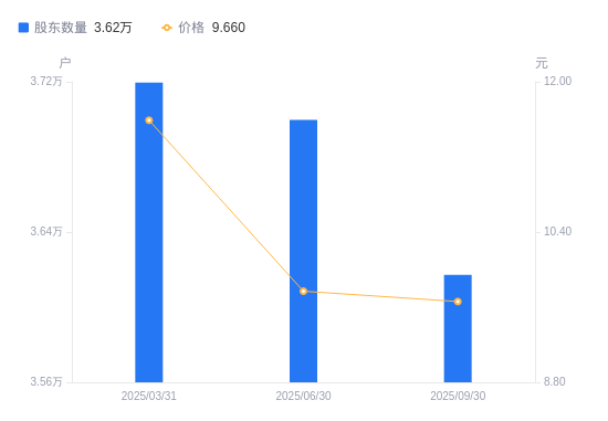 日期A股户数(户)流通A股户均持股数(股)户均持股市值(万元)2026-02-283353432328.7232.232025-12-313102234946.5436.272025-09-303617229971.0128.952025-06-303699729302.6828.632025-03-313719629145.9133.782025-02-283775328715.9034.322024-12-313562330432.9139.932024-09-304259825449.8229.602024-06-304308525162.1522.802024-03-312756139334.9831.00