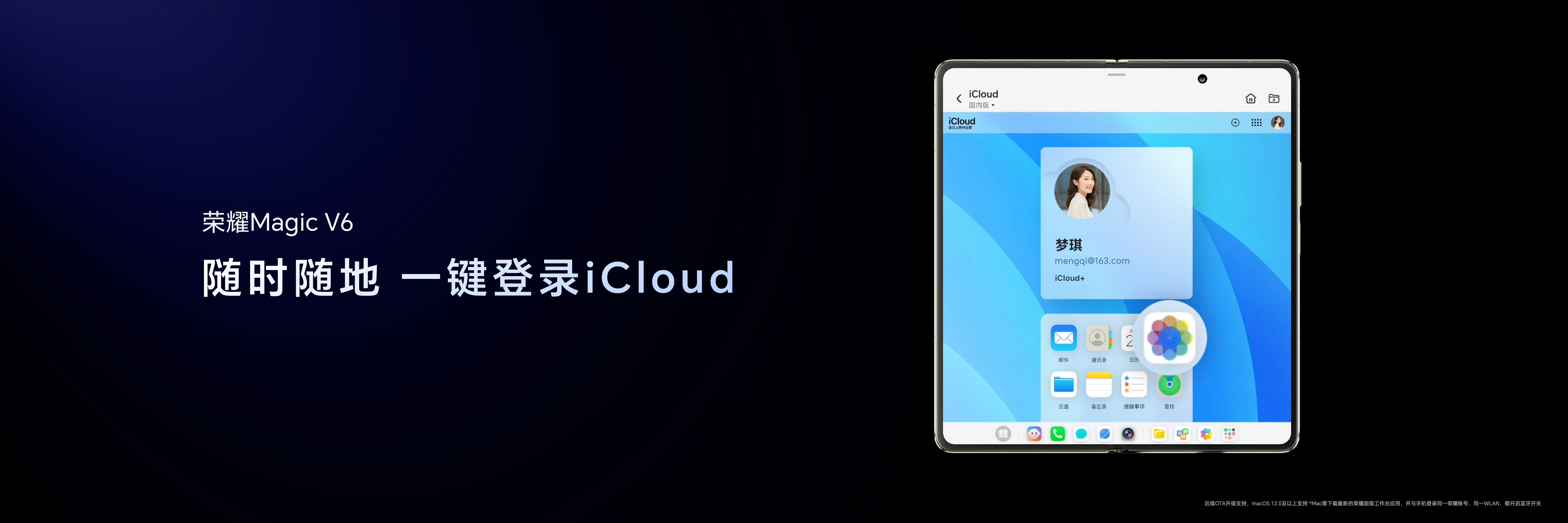 荣耀Magic V6 定位Mac的折叠屏好搭子?行业首发Mac一碰即传,支持苹果办公三件套的编辑,展开秒变Mac扩展屏,还能一键登录iCloud查看相册。此外,还支持AirPods原生级体验、Apple Watch信息共享等。是不是有点厉害了?
