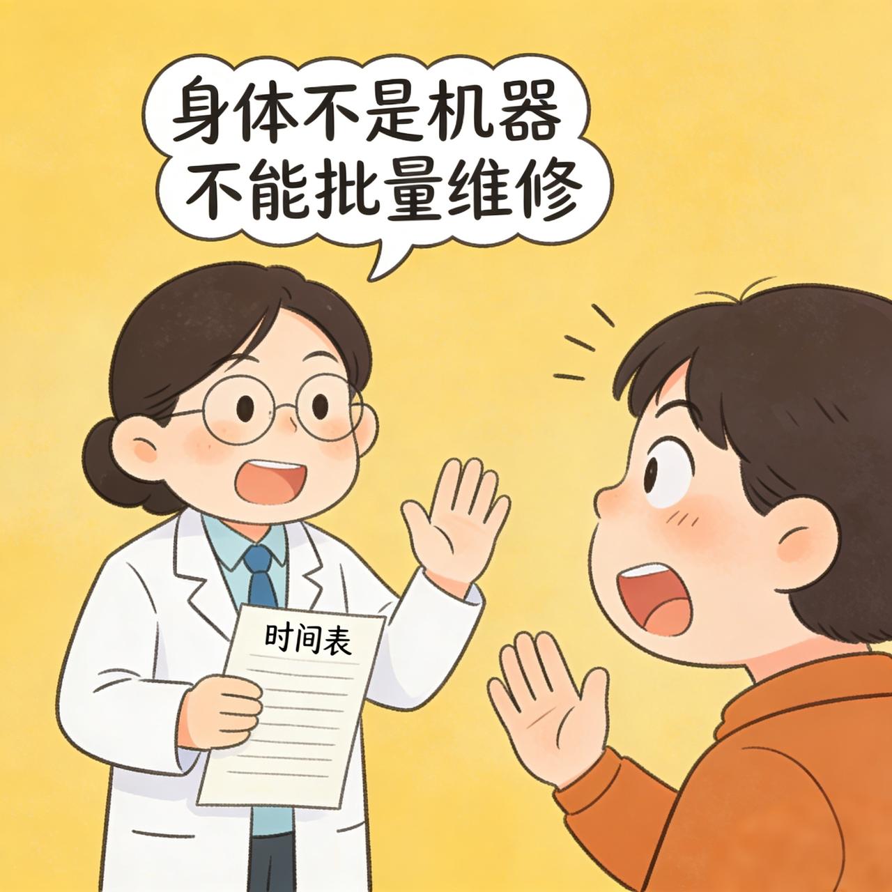 一周连做5台手术!这位“狠人老公”直接把医院当流水线 沈阳一位29岁老公火了!别人看病一次治一种,他直接一周连做5台手术:切息肉、割痔疮、包皮、挖痣、拔智齿,主打一个“一站式搞定”。 本想省时省力,结果术后直接疼到怀疑人生,自己都直呼太遭罪,网友笑称:这是拿命在省时间! 大家佩服他是个狠人,但也纷纷表示不敢效仿。 一口气做多项手术,看着高效,实则很伤身体。术后疼痛叠加、恢复变慢,还可能增加感染风险,纯属花钱买罪受。 健康这事儿,真不能图省事。 身体不是机器,没法一次性“批量维修”,该慢慢来就得慢慢来。别学这位狠人老公,看病还是要听医生的,循序渐进才最稳妥! 狠人老公 健康科普
