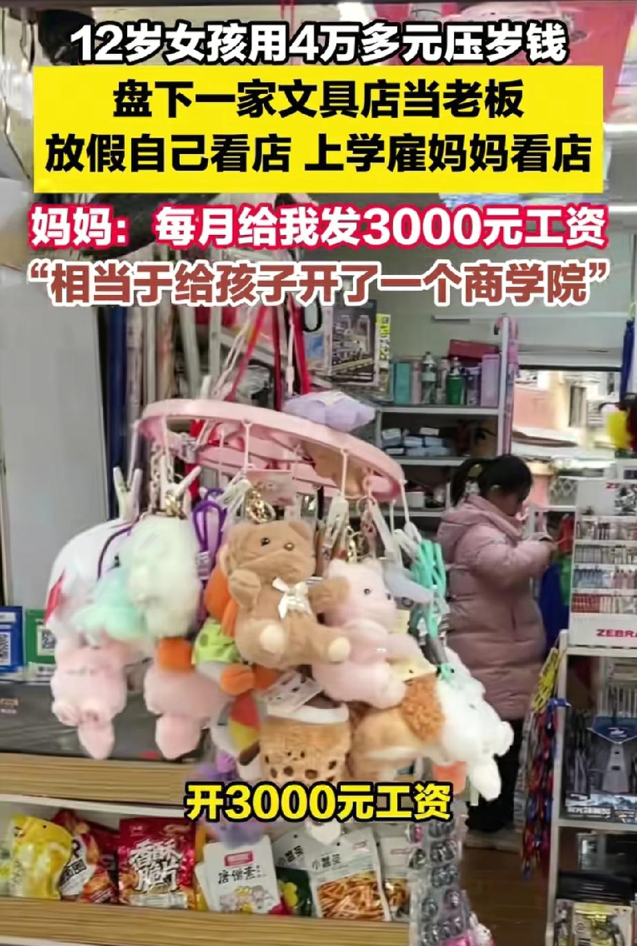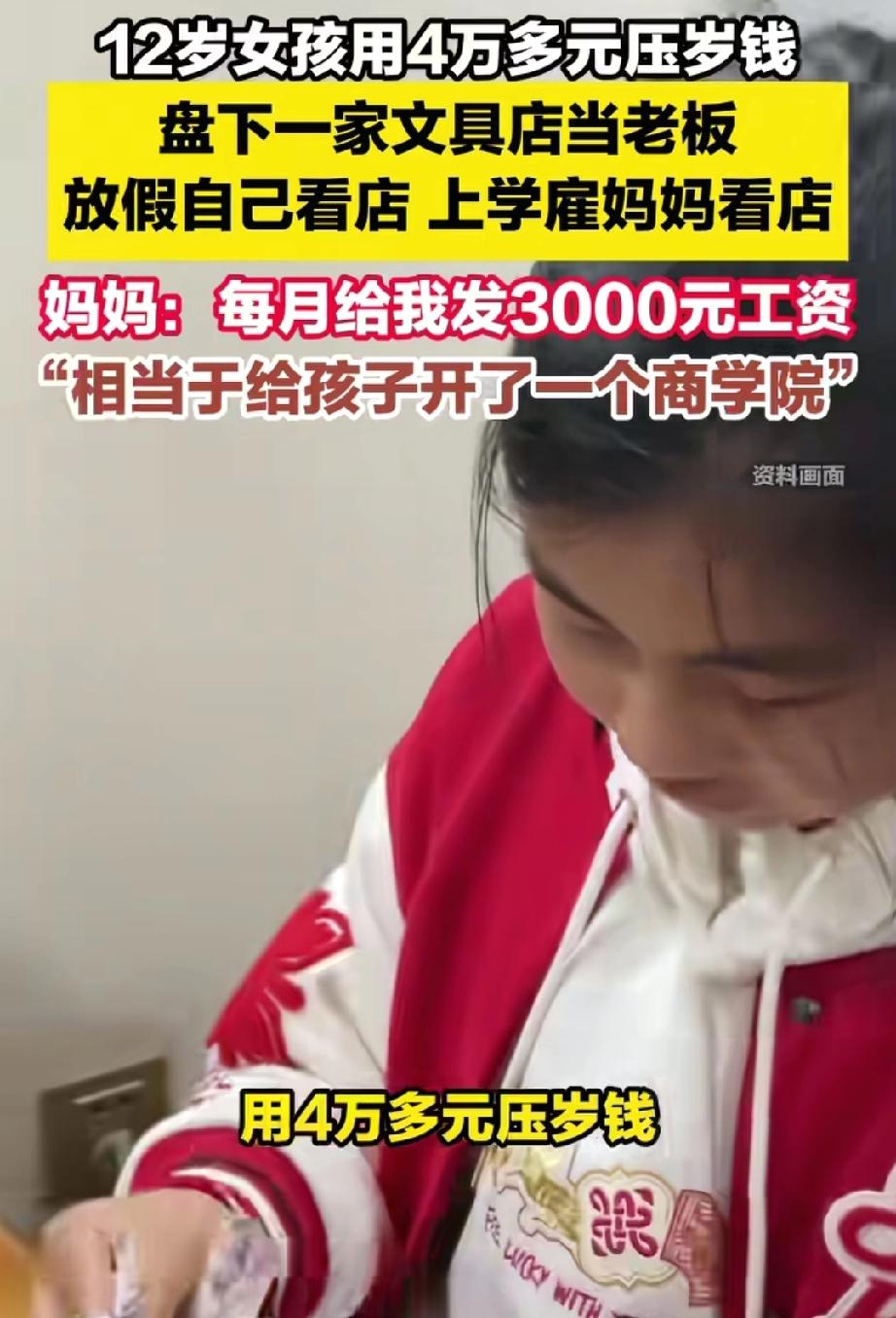 太牛了!江西,12岁女孩用多年积攒的零花钱和压岁钱,盘下学校门口的文具店,并且雇妈妈代管并按月发工资。没成想妈妈全力支持! 小姑娘觉得,把钱存在银行里,利息少得可怜,太不划算了。正好发现小区附近有家文具店要转让,她考察了一圈,直接动用了自己从出生到现在攒下的4万多块压岁钱和零花钱,把店拿了下来。 更绝的是:店有了,可自己平时要上学怎么办?小姑娘脑子一转,盯上了在家空闲的妈妈。她一本正经地跟妈妈商量:“妈,你帮我看店,我每个月给你开3000块钱工资!” 妈妈当时都懵了,活了半辈子,居然被自己12岁的女儿“聘用”了。 这可不是闹着玩的。现在这家店已经运转起来了: 上学期间:妈妈是“员工”,白天看店,月底领工资; 放学之后:小姑娘亲自接班,整理货架、招呼客人; 周末时间:她负责进货、定价、记账,还做了一个可视化账本,把每天的收支记得清清楚楚。 妈妈感慨地说:“这哪是开店啊,这相当于给孩子开了个商学院!” 现在很多孩子拿到压岁钱第一反应是“买什么好吃的、玩什么好玩的”,而她想到的是“怎么让钱不贬值”。这种延迟满足的能力和商业嗅觉,别说孩子了,多少大人都没有? 而妈妈没有因为孩子小就一棍子打死,也没有大包大揽。而是跟女儿约法三章:开店可以,但学习不能落下,一旦成绩下滑,立马叫停。 这种“放手不放任”的边界感,太值得学习了。 真正的富养,不是给孩子留一座金山,而是教会他如何去“挖山”;真正的保护,不是把孩子拴在裤腰带上,而是让他自己学会走路,哪怕会摔跤。 最好的教育,从来不是死读书。 生活才是最好的课堂,实践才是最好的老师。 财商、独立、担当,这些课本上学不到的能力,才是孩子一辈子的底气。 有梦想敢去追,有父母做后盾,这样的孩子,未来一定闪闪发光!