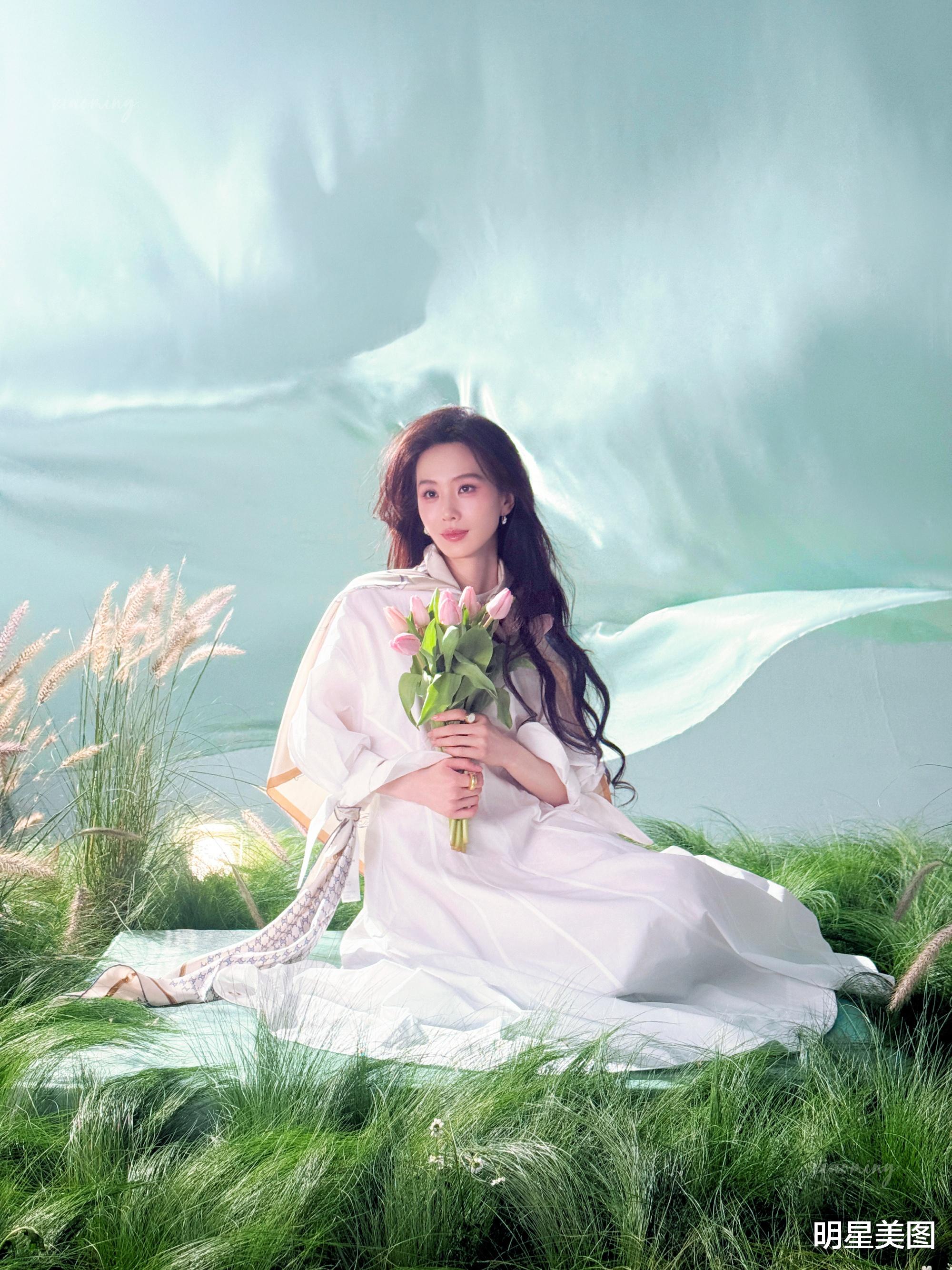刘诗诗从春日里走来,风掠过发梢裙摆轻扬,郁金香温柔成浪漫旁白
