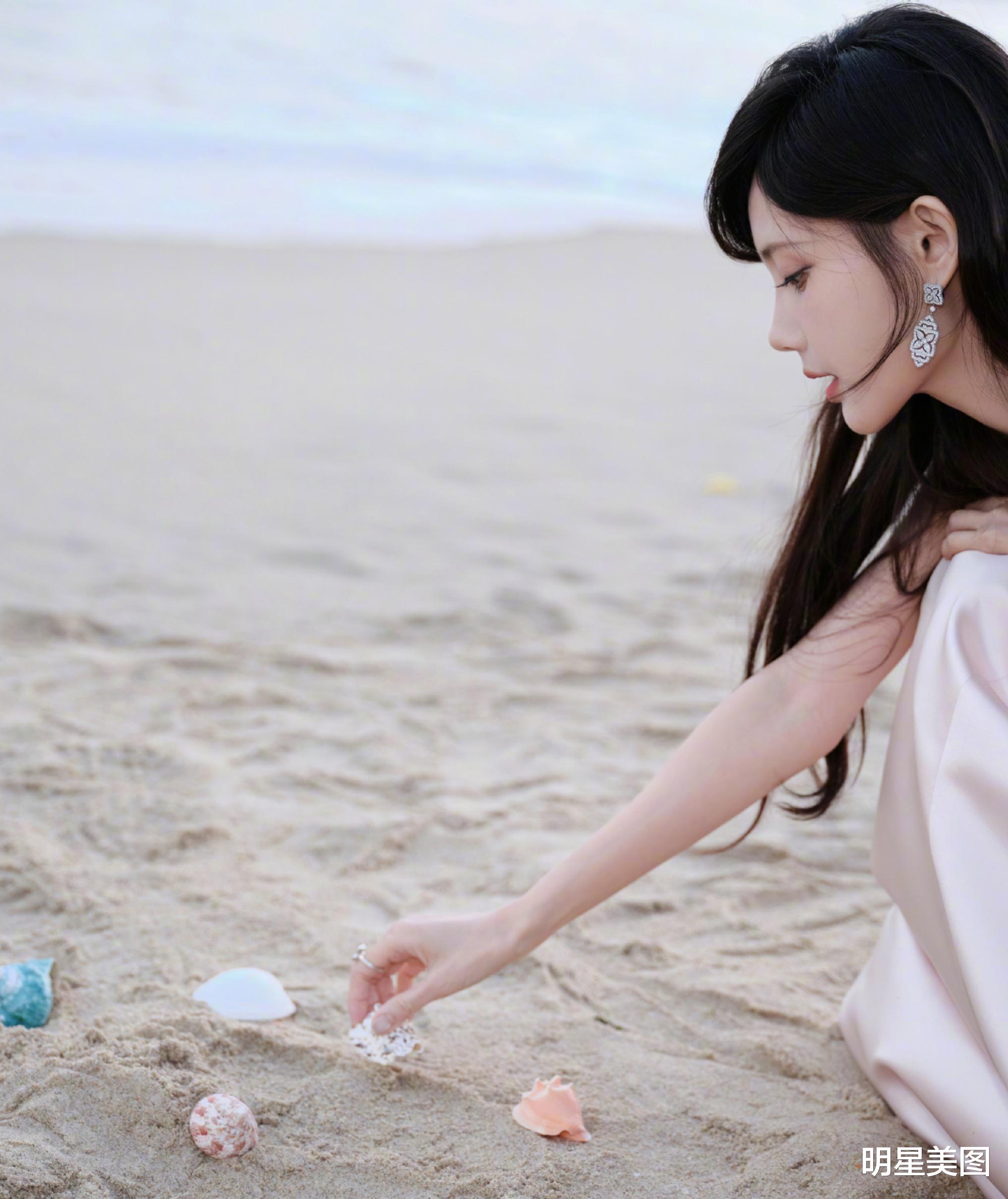 李一桐海风漫过裙摆,蝴蝶纱巾浪尖起舞,粉色缎面裹着少女心事