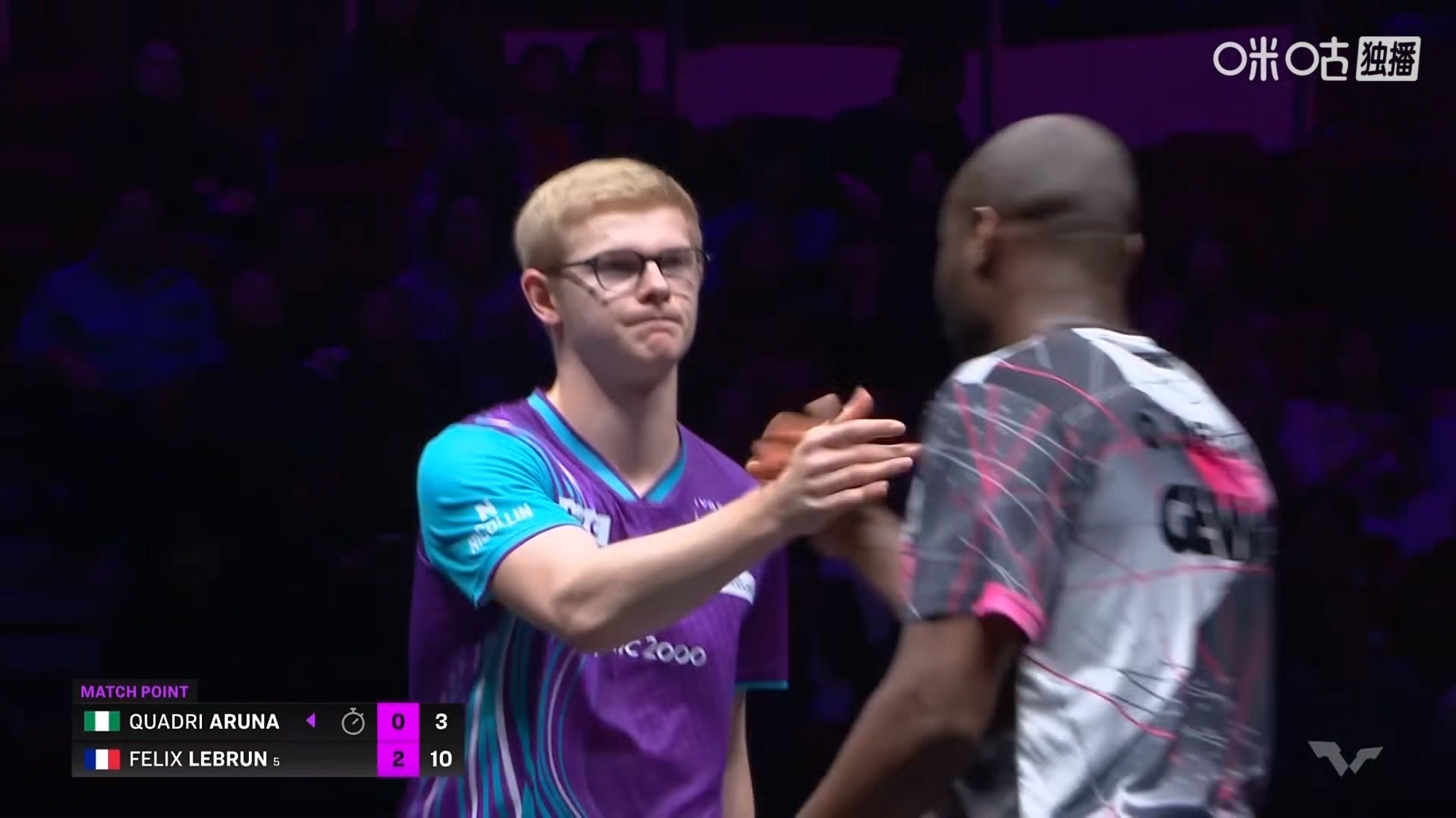 F勒布伦3比0阿鲁纳(11-5,11-6,11-3)晋级wtt重庆冠军赛2026 男单第二轮