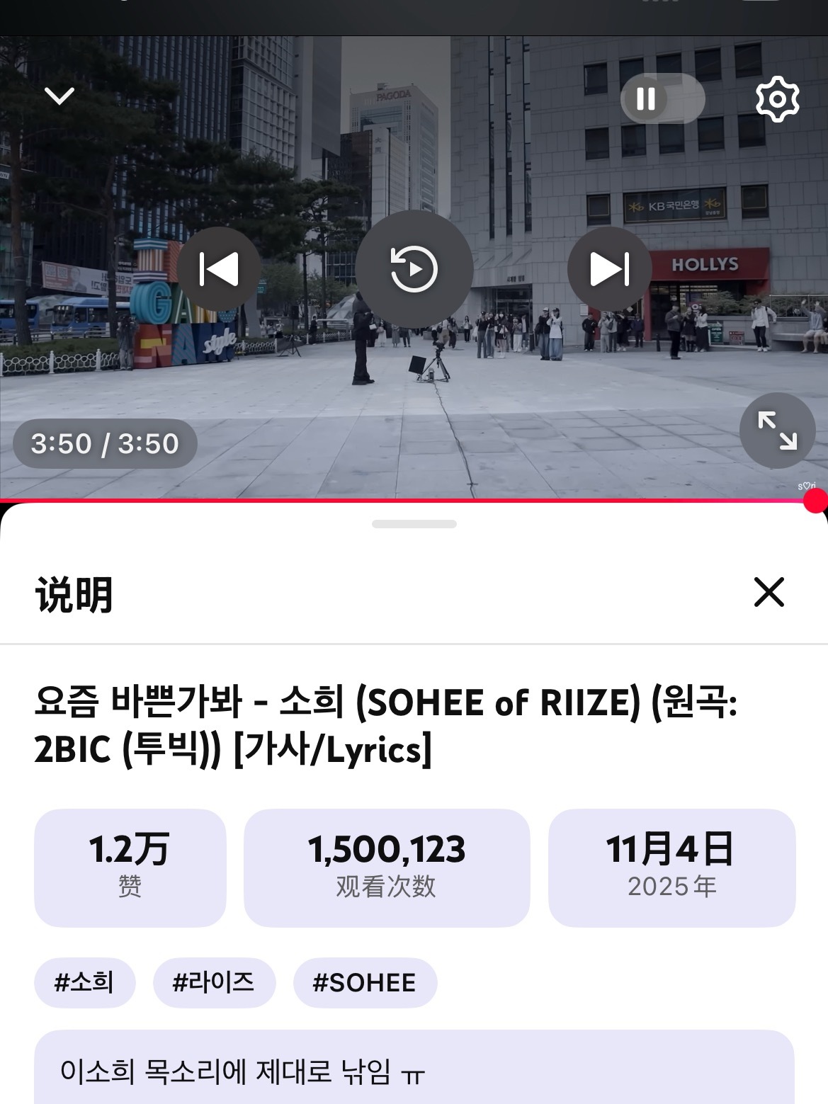 在这个美妙的夜晚,让我们恭喜李炤熙的cover《最近好像很忙》油管历时4个月破1
