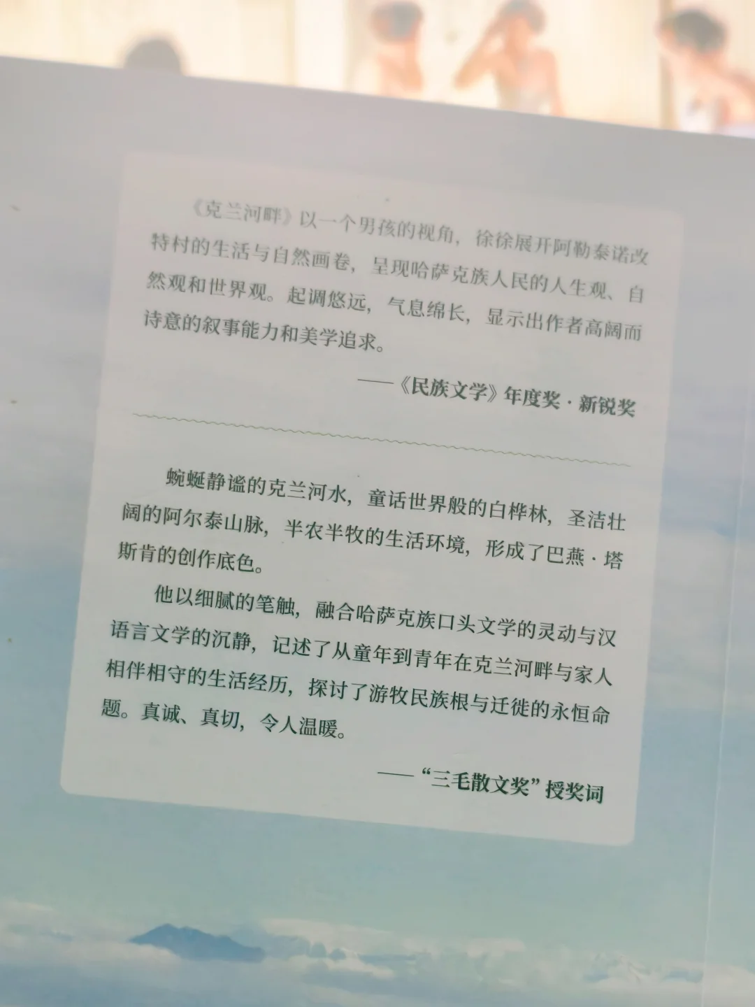 克兰河不是背景板,是他的人生导师:河水慢慢淌,教他不慌不忙地对待离别与迁徙;涨水时的汹涌,让他懂了生命里藏着的韧性。白桦林是童年的玩伴,树皮上的刻痕记着成长的刻度;阿尔泰山脉是沉默的靠山,不管牛羊迁到哪里,那道山影永远是“根”的方向。没有华丽辞藻,却让你忽然懂了:好的成长,本就该和自然这样亲近。