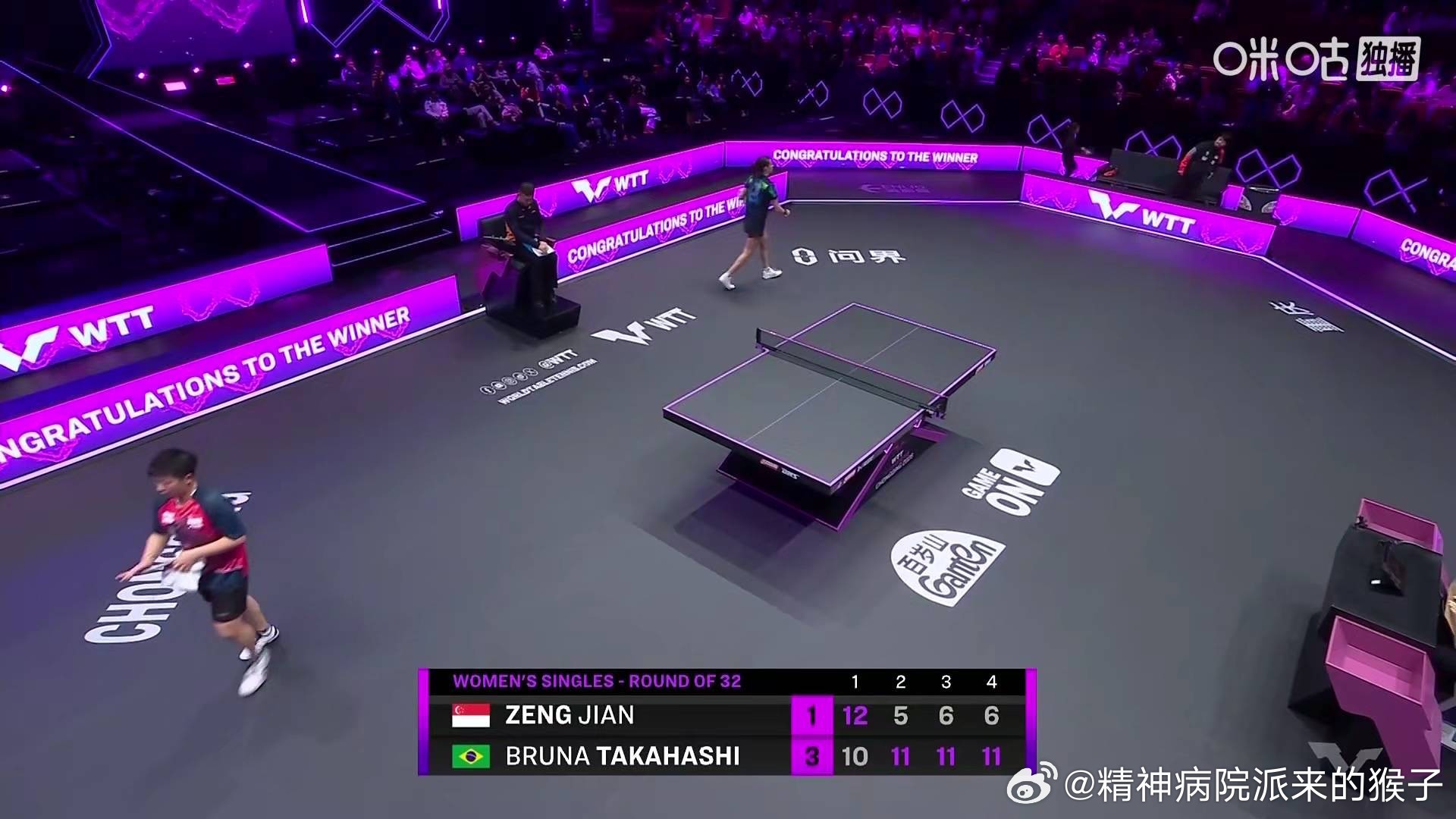 高桥布鲁纳3比1曾尖(-10,5,6,6)晋级2026WTT重庆冠军赛女单十六强下一轮:高桥布鲁纳🇧🇷VS蒯曼🇨🇳