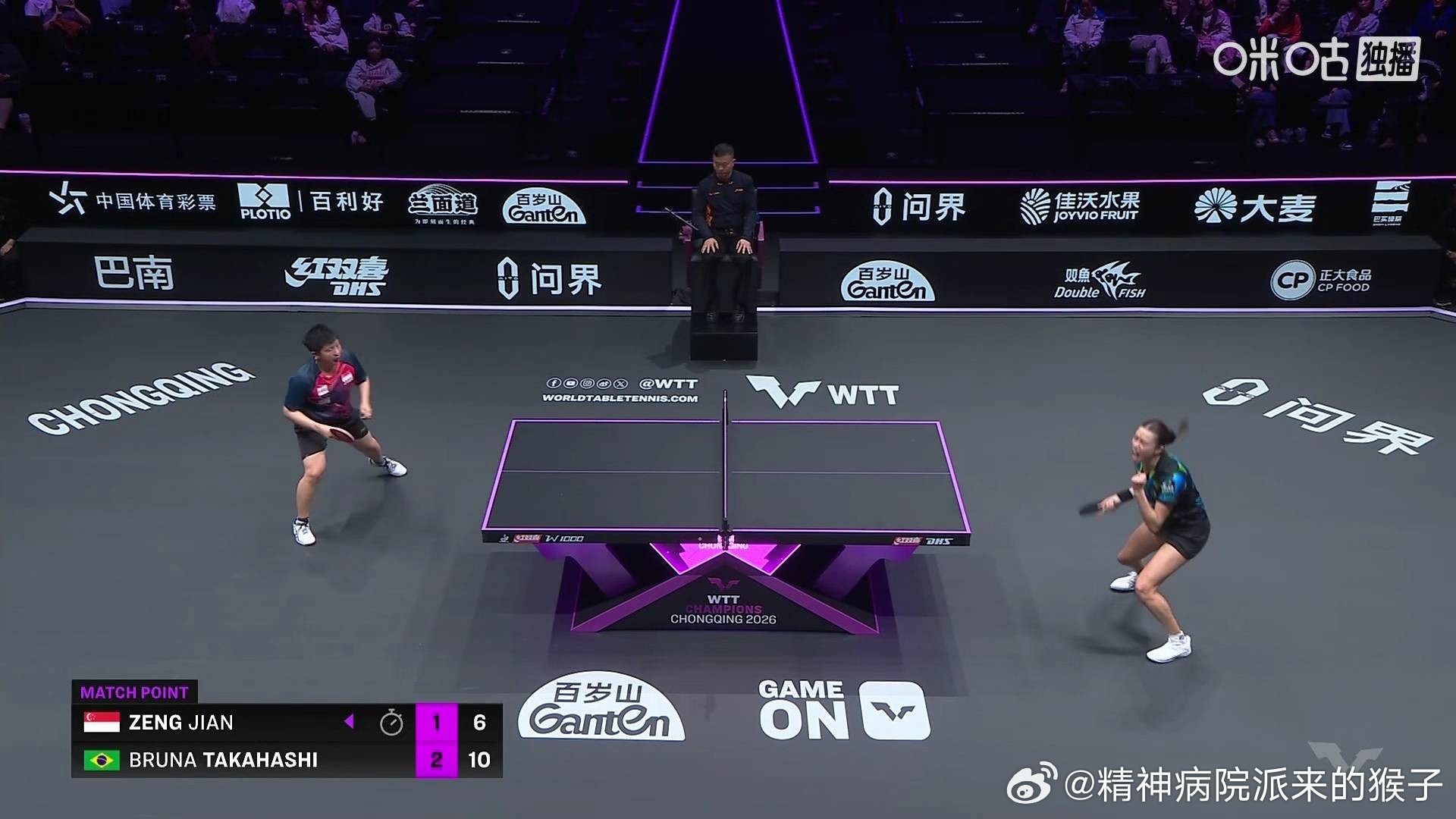 高桥布鲁纳3比1曾尖(-10,5,6,6)晋级2026WTT重庆冠军赛女单十六强