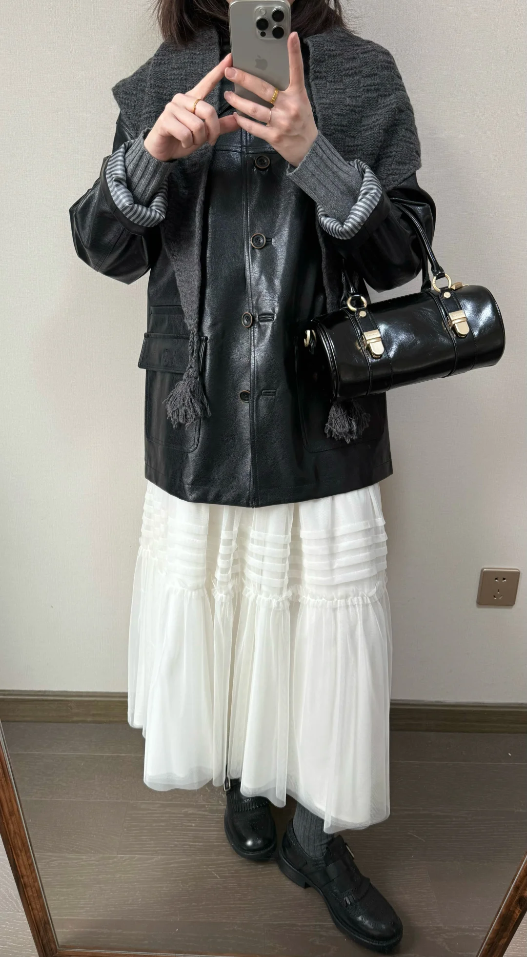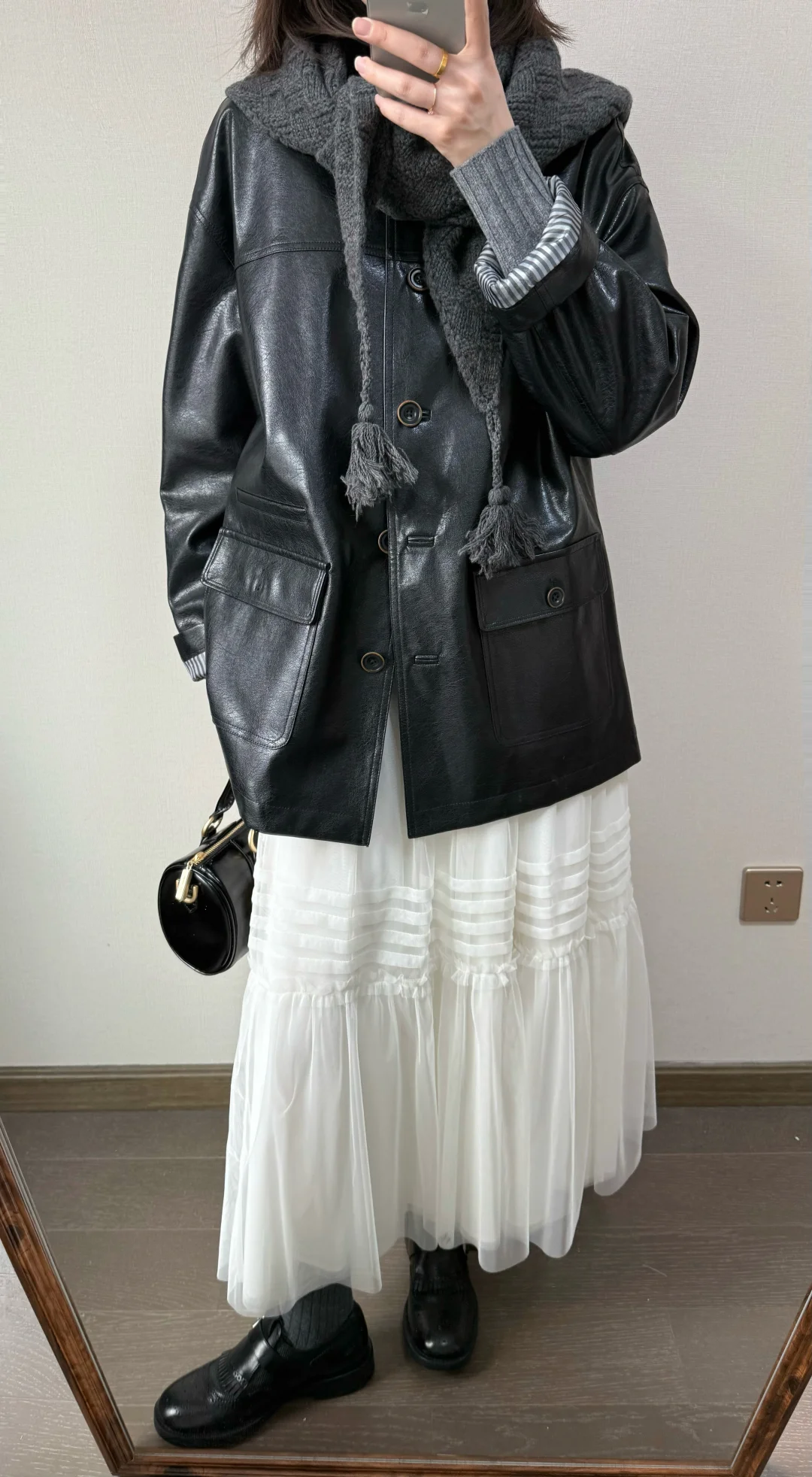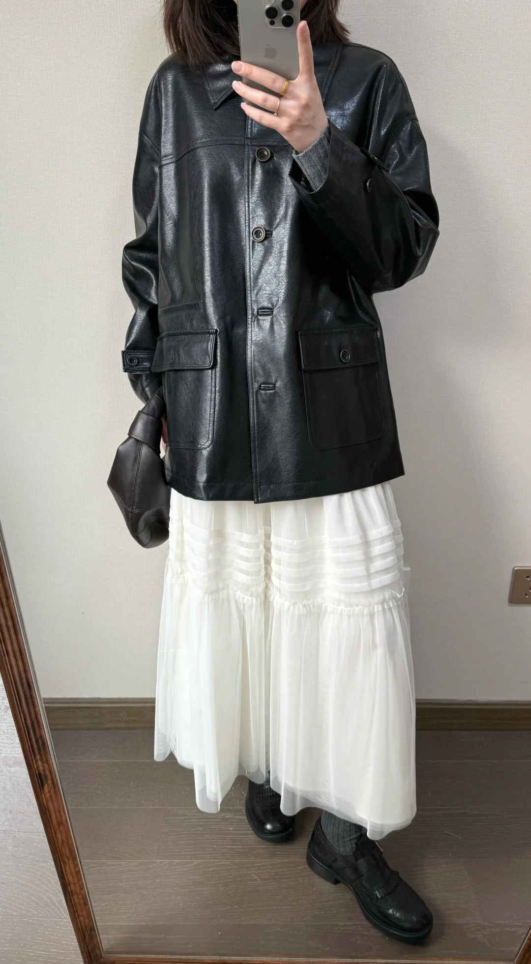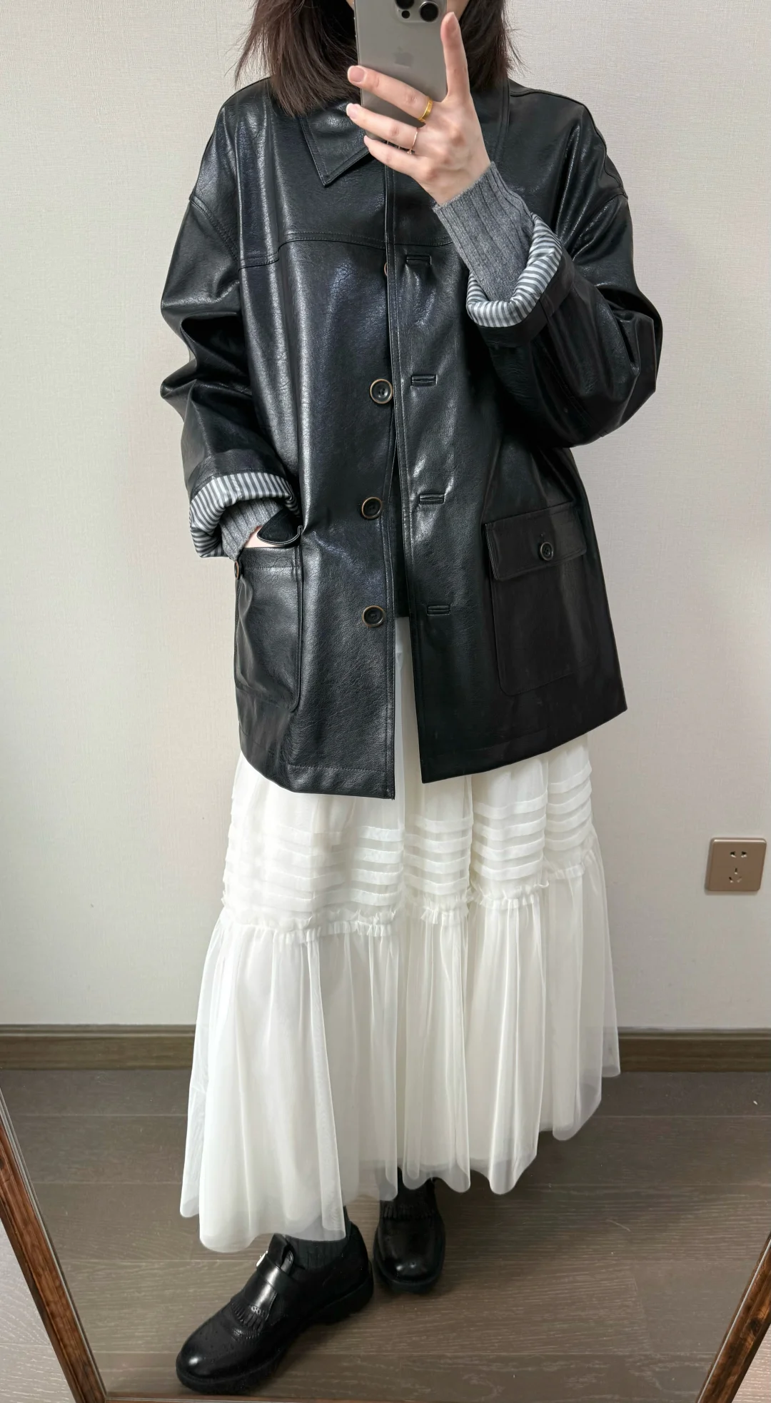 cleanfit简单出门 极简穿搭 通勤穿搭 皮衣 复古皮衣 小白裙 早春穿搭 期待春天 皮衣穿搭
