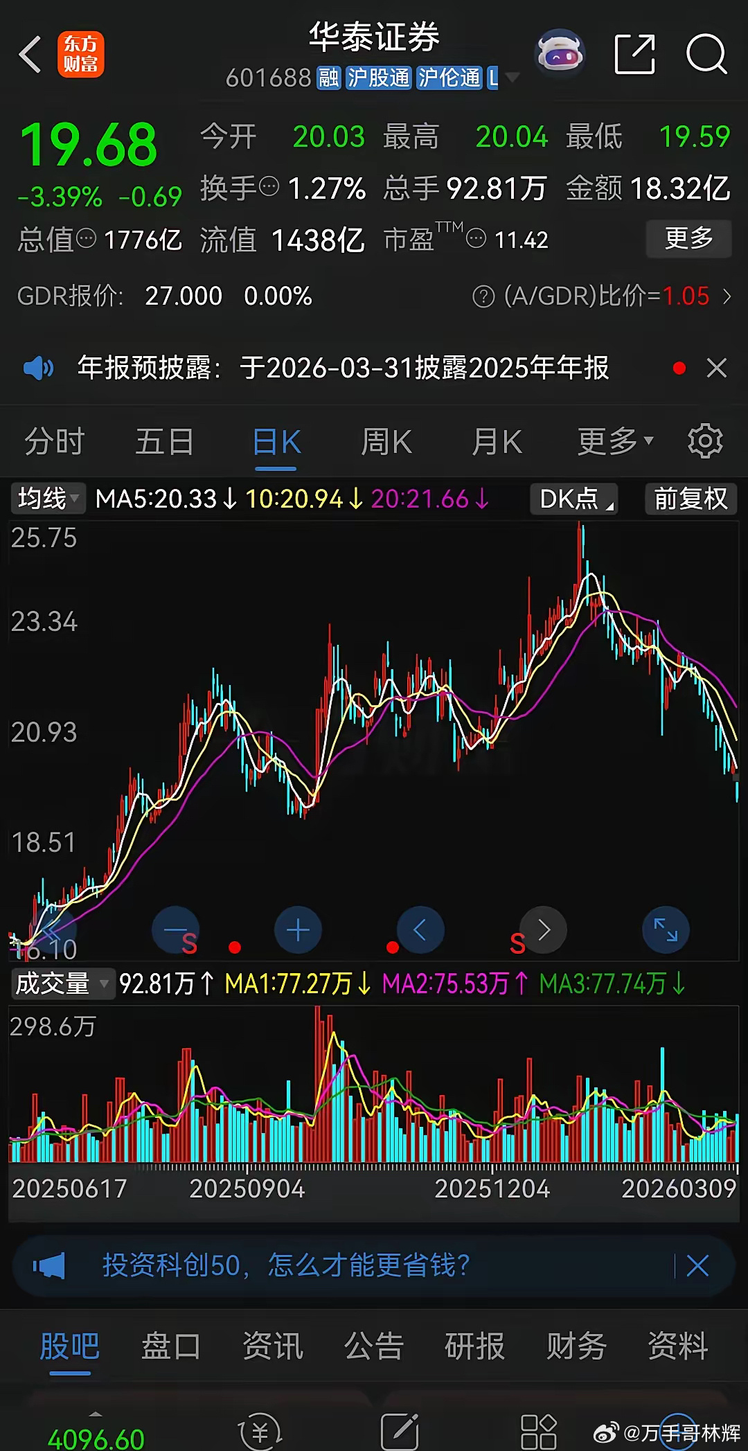整个券商板块49只成分股,仅一家飘红,可以说几乎快全军覆没了,锦龙股份跌停,广发证券、华泰证券大跌超过3%,中银证券、长江证券,国泰海通、华鑫股份、国信证券、中信证券、华林证券跌幅均超过2%,而且几个头部的大券商,像中信证、券华泰证券、国泰海通都是严重彻底破位,大有加速下跌态势。大盘近一年多以来,一路高歌猛进,持有券商的股民却亏得鼻青脸肿,不但错过了这波牛市行情,还产生了不小的亏损,感觉比窦娥还冤!
