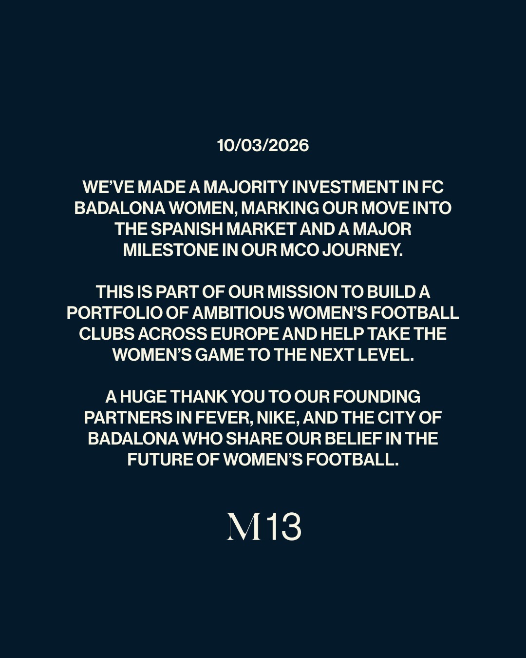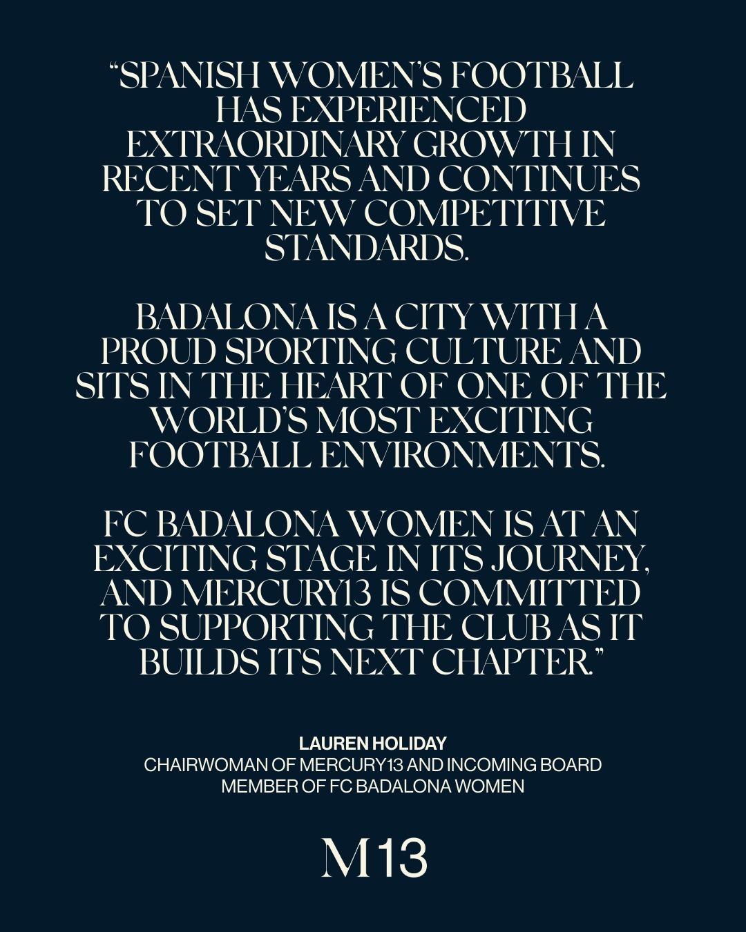 Mercury13投资集团成立于2023年,致力于在女足领域开展跨国俱乐部项目。2024年3月,该集团收购了意大利Como Women女足俱乐部(不是男足意甲的科莫,是另一家俱乐部,男足科莫另有女足队)作为集团项目的开始,并在同年获得了来自Avenue Sports Fund的重要投资。本赛季初期,集团又成为英格兰次级联赛的布里斯托尔城女足最大股东,巴达洛纳则是该集团入主的第3支球队。