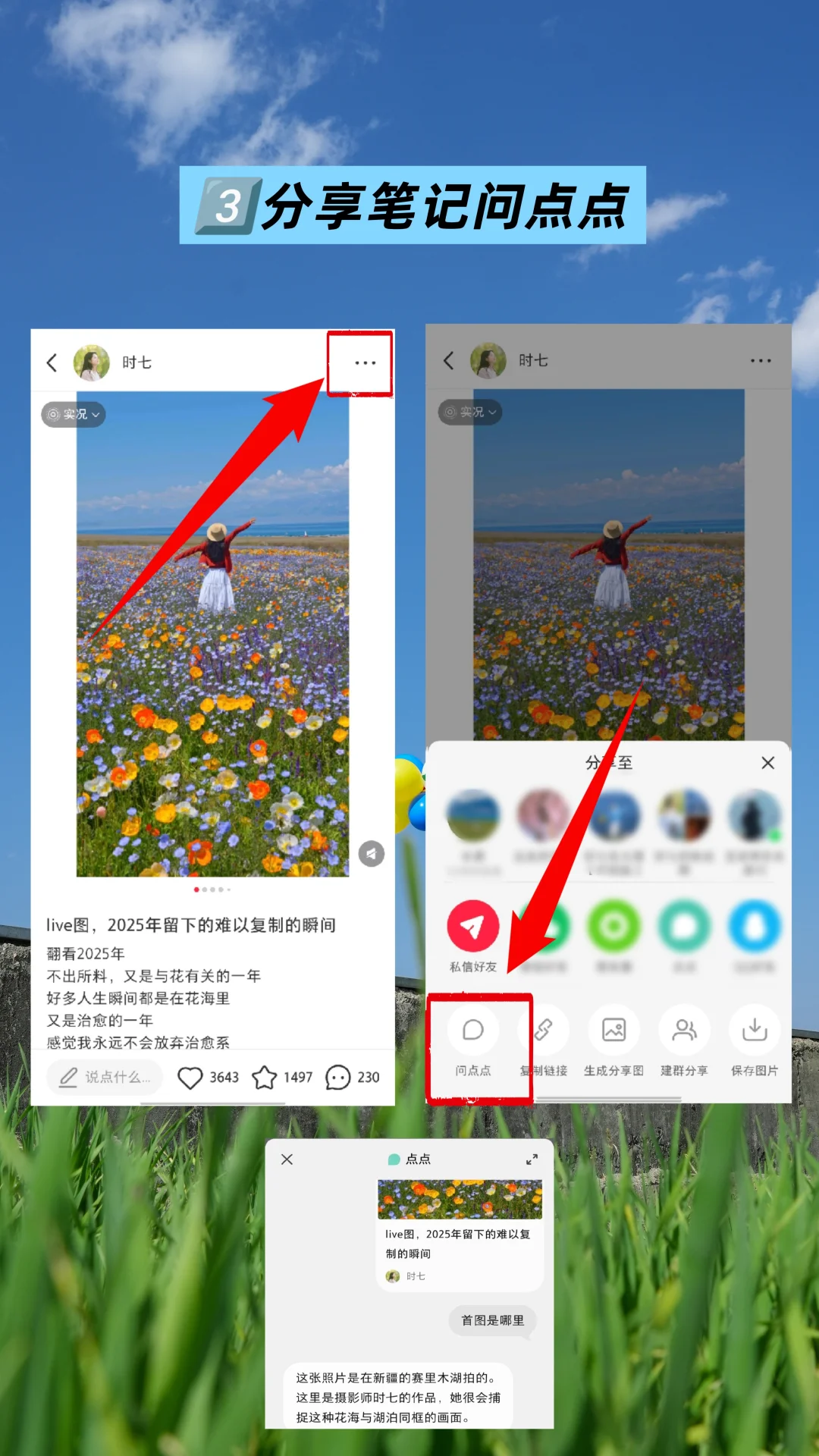②看笔记的时候点击分享,就可以让点点答疑解惑