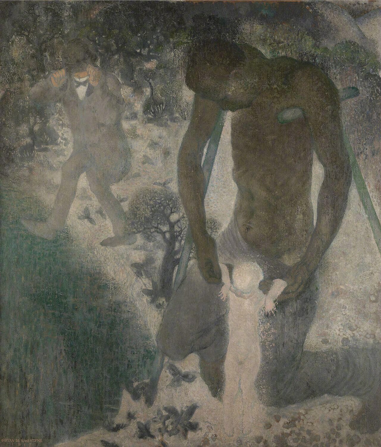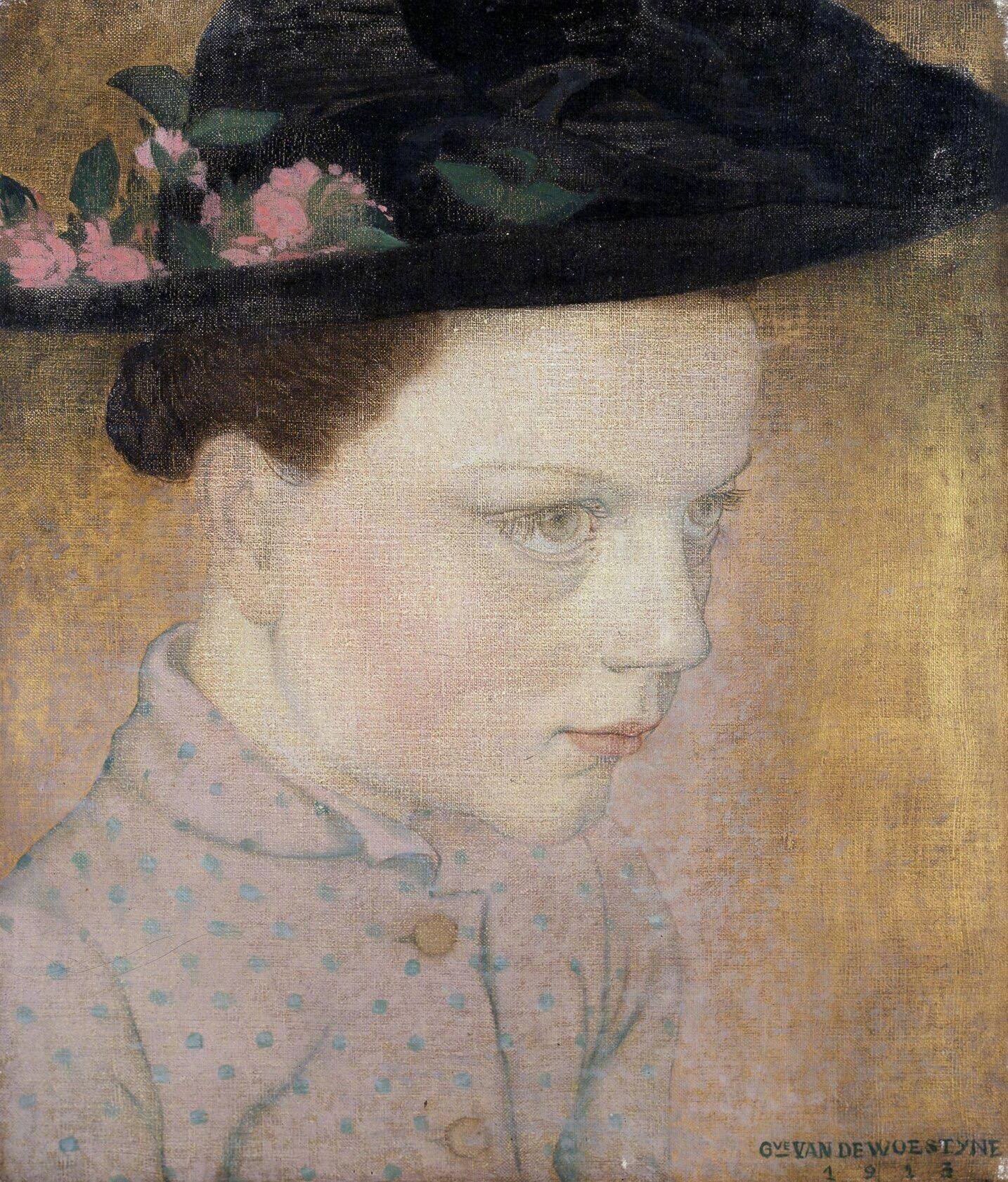 Gustave Van de Woestyne(1881–1947)是比利时20世纪初的重要画家,常被放在根特附近的拉泰姆艺术语境中理解。美术馆与研究写作里,他被描述为把象征主义的精神性、宗教图像传统与乡村生活经验并置的人:题材常来自农民、亲友与宗教母题,画面却不追求情节推进,更重视一种被时间按住的“在场”,让人物像肖像也像寓言原型,沉静、克制,同时带着隐隐的心理压力与道德重量。在方法上,他倾向于先用稳固的线与结构把人物“钉”在画面里,再通过简化背景、大色块与细腻的明暗推进,把观看噪音压低,让凝视本身成为内容。技法研究也指出他常让底稿线条在成画中保留痕迹,形成一种冷静的光感与秩序感,这种“轮廓—阴影—肤色”的层层控制,解释了他作品里那种平静与紧张同时存在的质地。这些面孔像依恋经验的回声:被注视、被衡量、想靠近又想退开。当叙事被降低、行动被按住,意义从哪里来,信仰与伦理如何安放,孤独如何被承受;他的绘画用“静止”把这些问题留在观众身上,让你带着它离开。